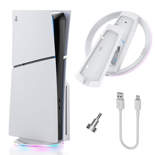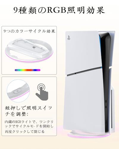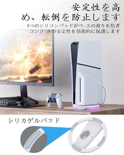 PS5 /PS5 Slim/PS5 pro 縦置きスタンド(ネジ付)OLCLSS ps5 縦置きスタンド ps5 スタンド 転倒防止 地震対策 傷付き防止 放熱改善 ps5 周辺機器(ps5 本体全機種対応・RGBライト・高硬度ABSコンポジット樹脂)—ホワイト