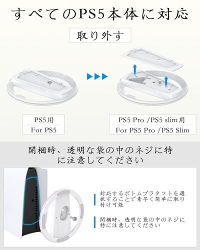 【多様なPS5モデルに対応】このPS5 縦置きスタンドは、PS5、PS5 Slim、PS5 PROゲーム機に対応しており、底部には滑り止めのシリコンリングと固定用ネジを備えており、ゲーム機を安定して安全に保持します。