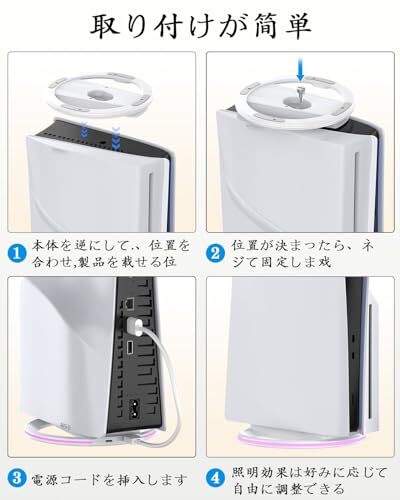 【簡単な取り付け】PS5、PS5 Slim、PS5 PROゲーム機用のPS5 縦置きスタンドは、日本語の取扱説明書が付属しており、簡単に取り付けることができます。複雑な工具は不要で、数分で取り付けが完了します。ゲーム機をひっくり返し、ネジを締めて電源を接続するだけで、PS5 スタンドの便利さを楽しむことができます。