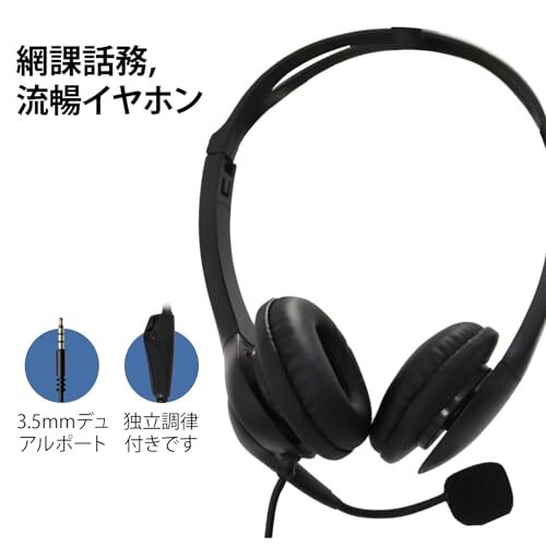3.5mm ヘッドセットUSB 3.5mm TypeC両耳で頭周りの大きさや音量を調節でき、Skype、ネット学習、Web会議、在