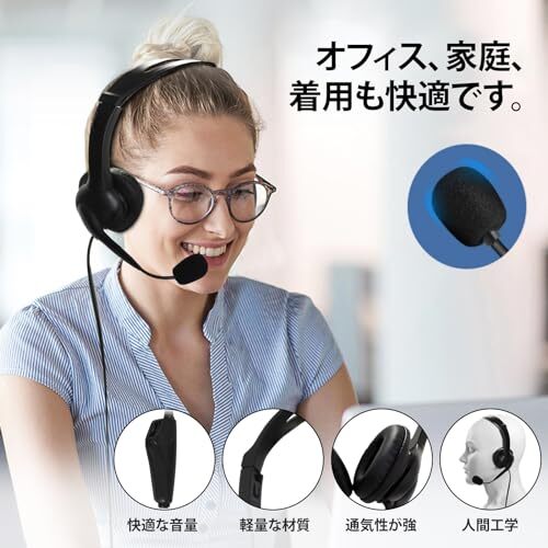 ヘッドセットUSB 3.5mm TypeC両耳で頭周りの大きさや音量を調節でき、Skype、ネット学習、Web会議、在宅勤務、業務用、リモートワーク、コールセンターでのクリア通話に適 (3.5mm)