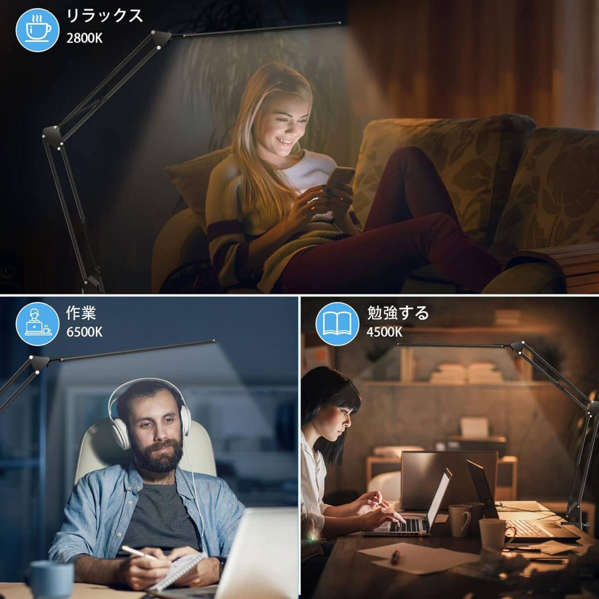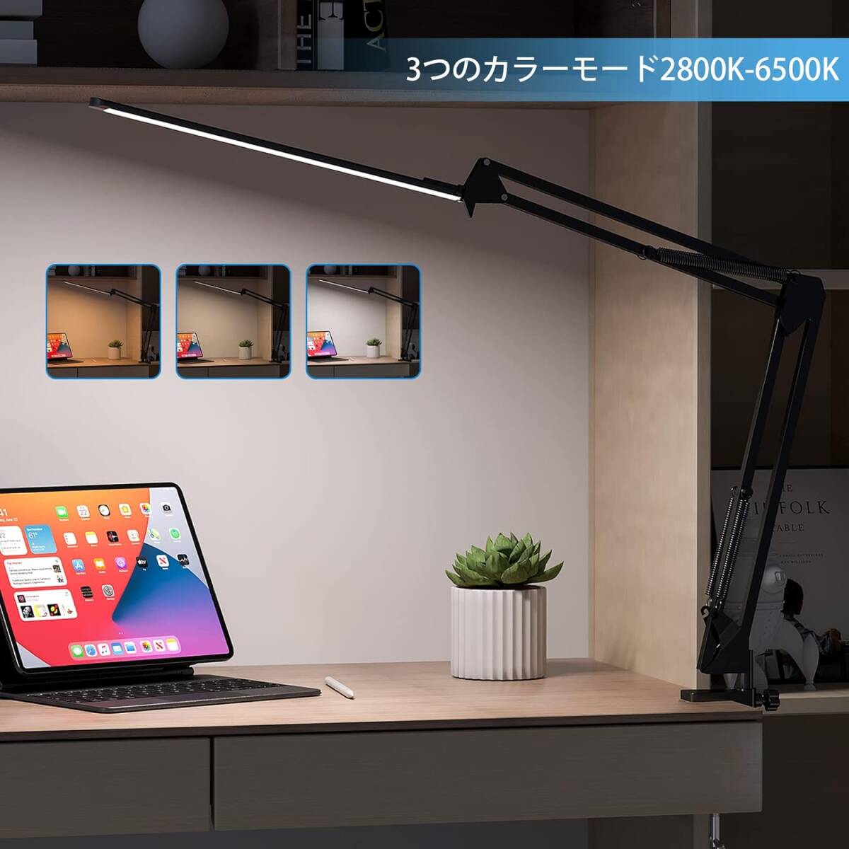 日常使い LEDデスクライト 目に優しい 電気スタンド 卓上ライト、3色モード&