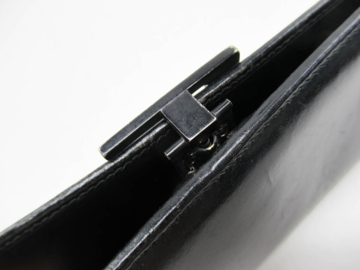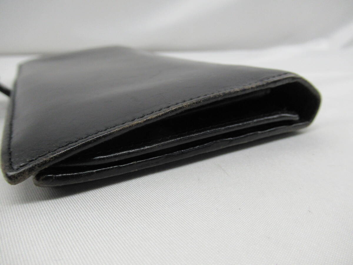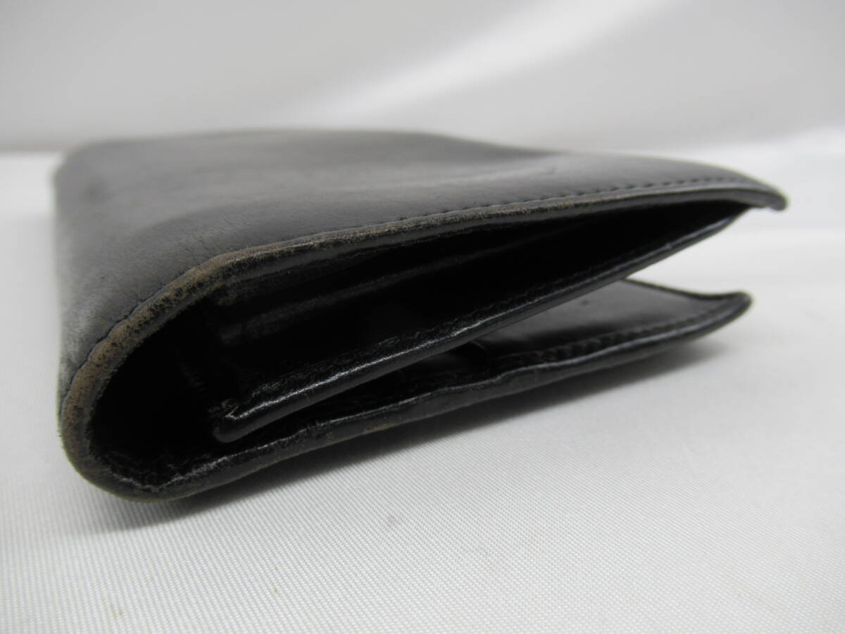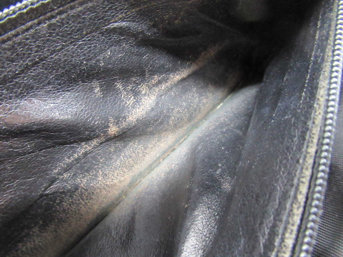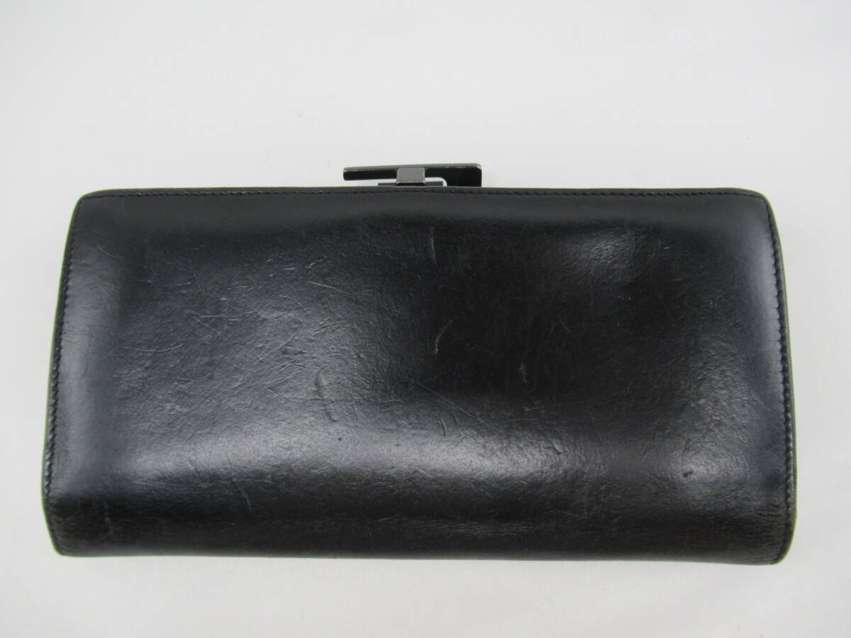 縁周りの削れ、留め具のぐらつき、小銭入れ内側の汚れ、内側カード入れ部分に型跡がございます。