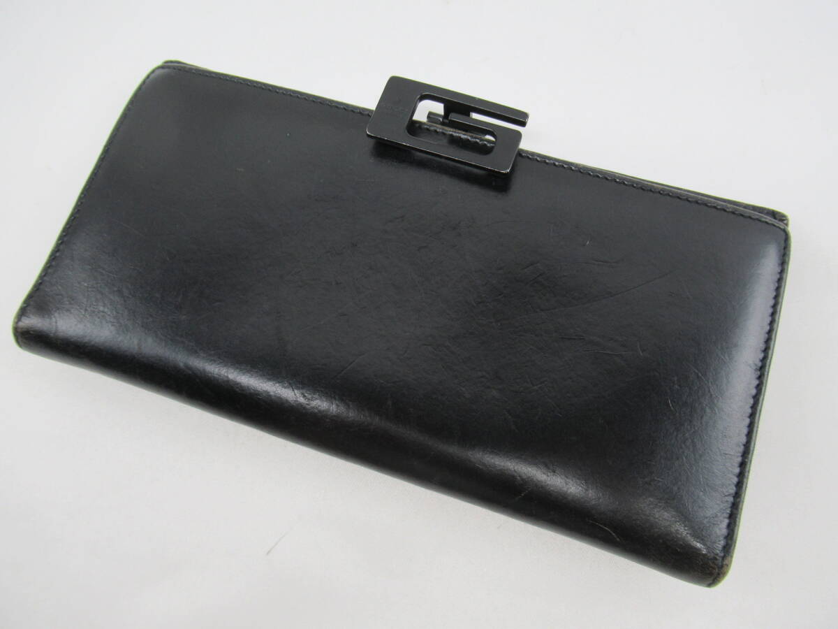 ★同梱不可【B送900円】2434 GUCCI グッチ 二つ折り長財布 レザー 035 2067 2098 皮革 小銭/札/カード入れ ブラック 黒