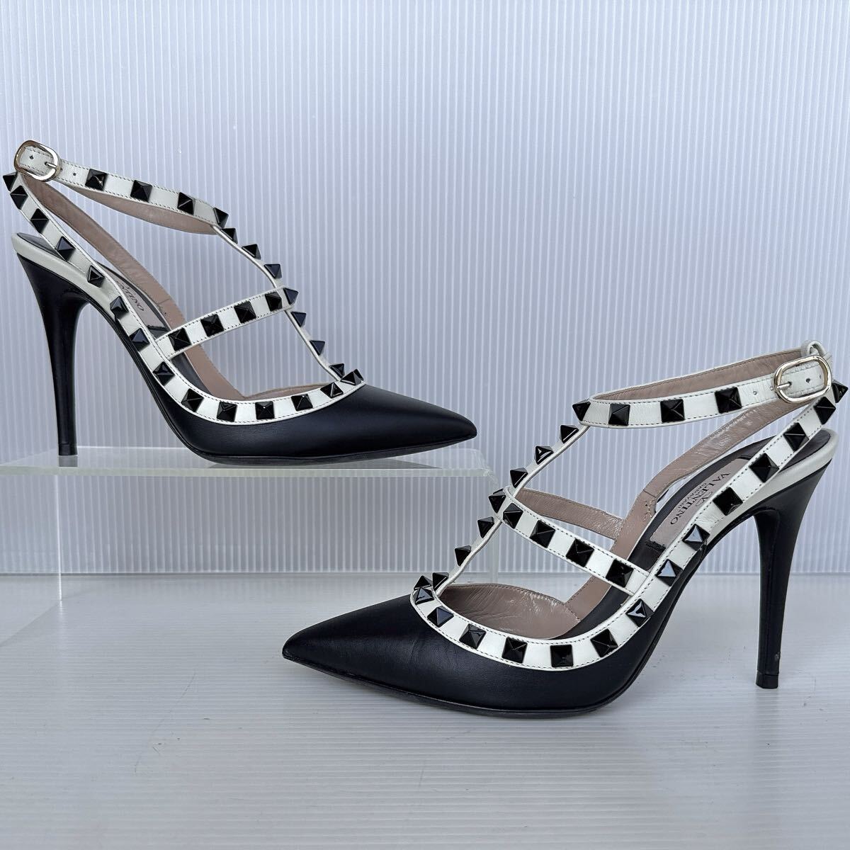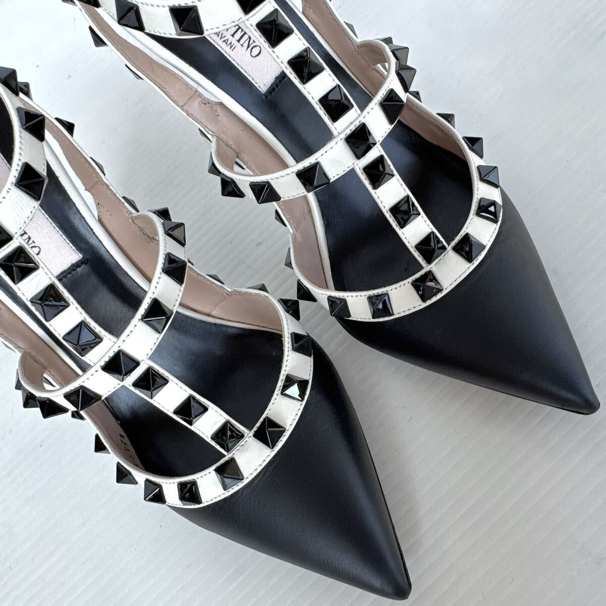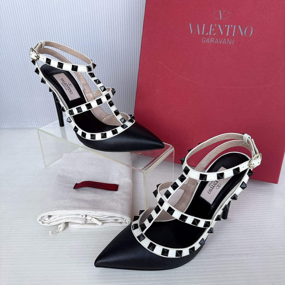 VALENTINO ヴァレンティノ 定番 ロックスタッズ ストラップ ポインテッドトゥ サンダル パンプス 靴 ハイヒール ピンヒール シューズ ミュール イタリア製 レーディス