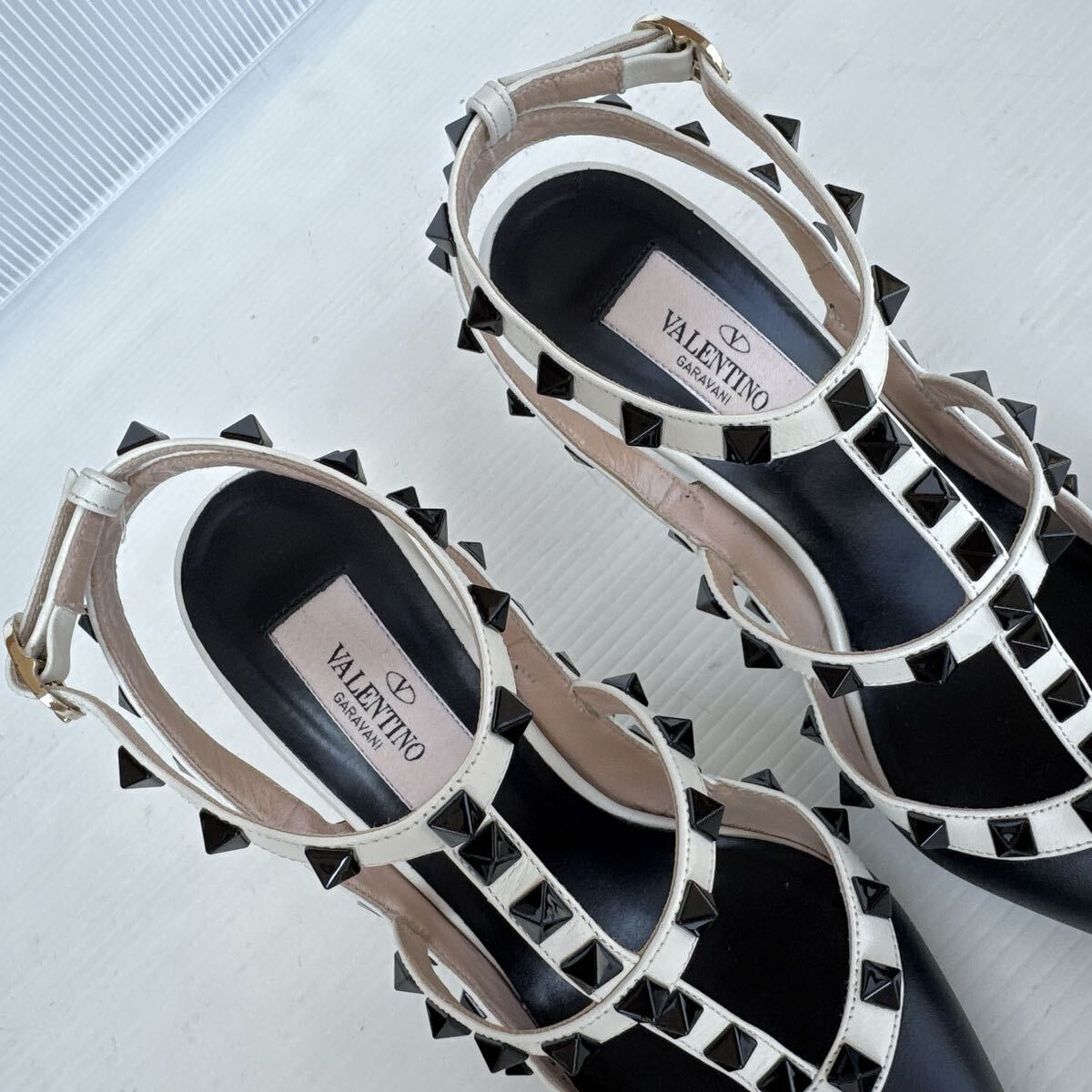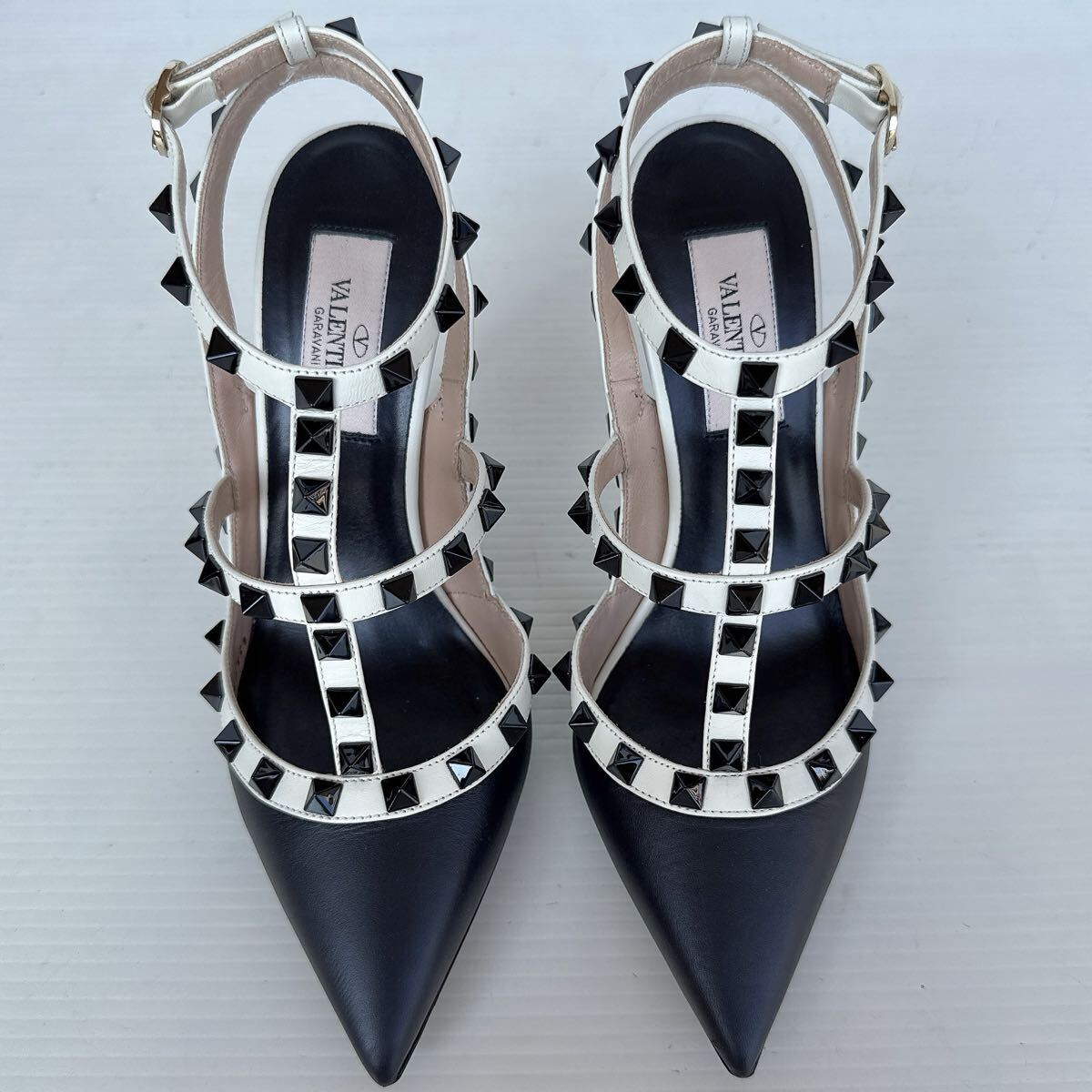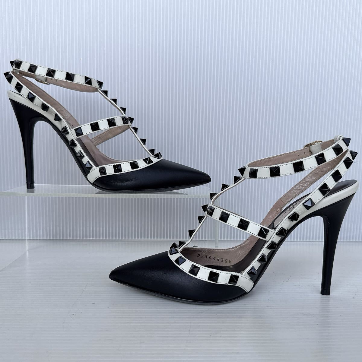 VALENTINO ヴァレンティノ 定番 ロックスタッズ ストラップ ポインテッドトゥ サンダル パンプス 靴 ハイヒール ピンヒール シューズ ミュール イタリア製 レーディス