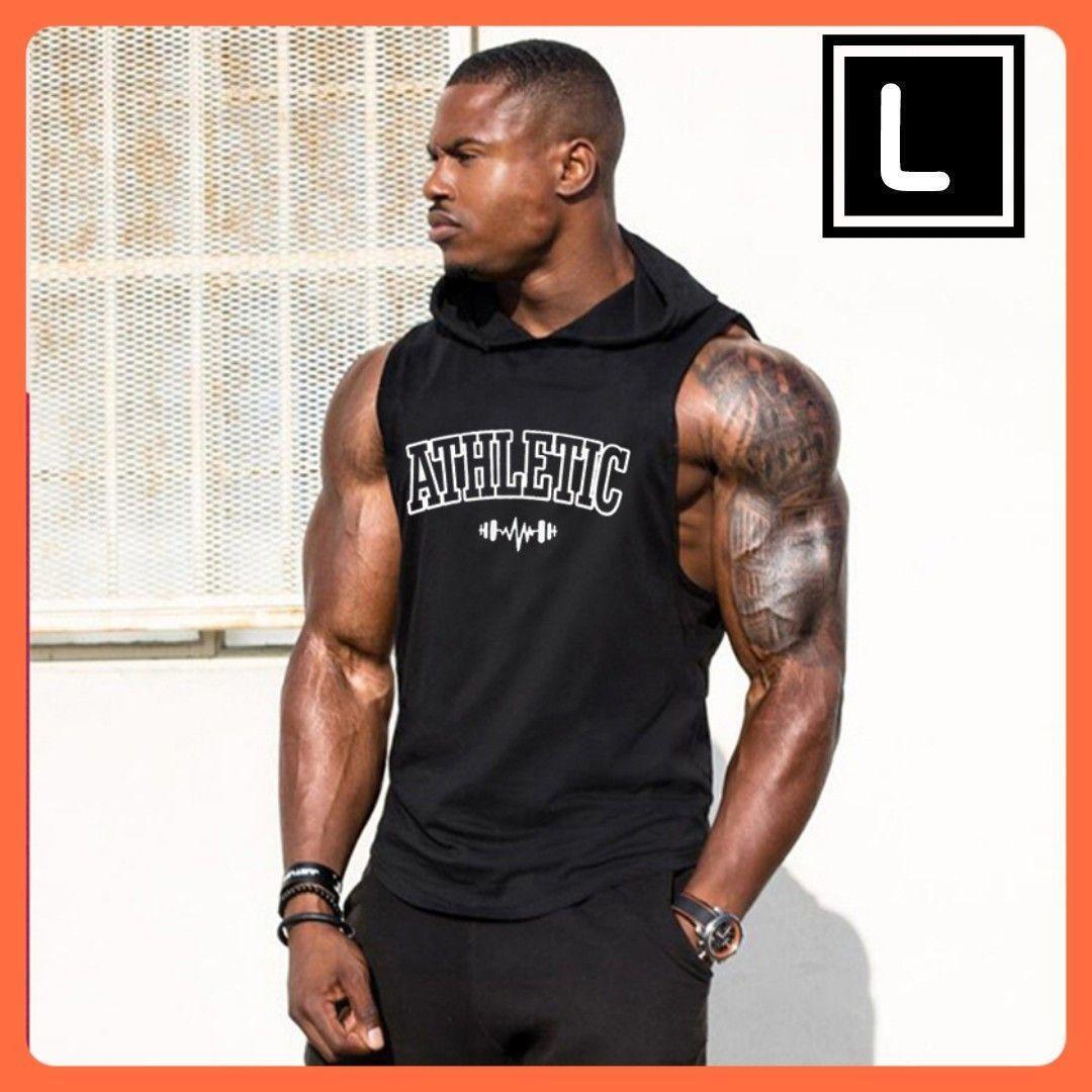 【メンズ フード付きタンクトップ ノースリーブ ブラック】