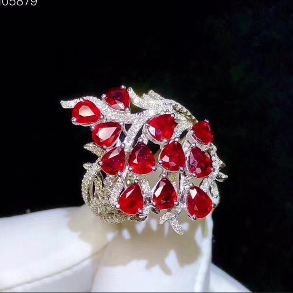 女性用ナチュラル ルビー シルバー リング 3mm x 4mm パーティー用 ソリッド925シルバー ジュエリーギフト