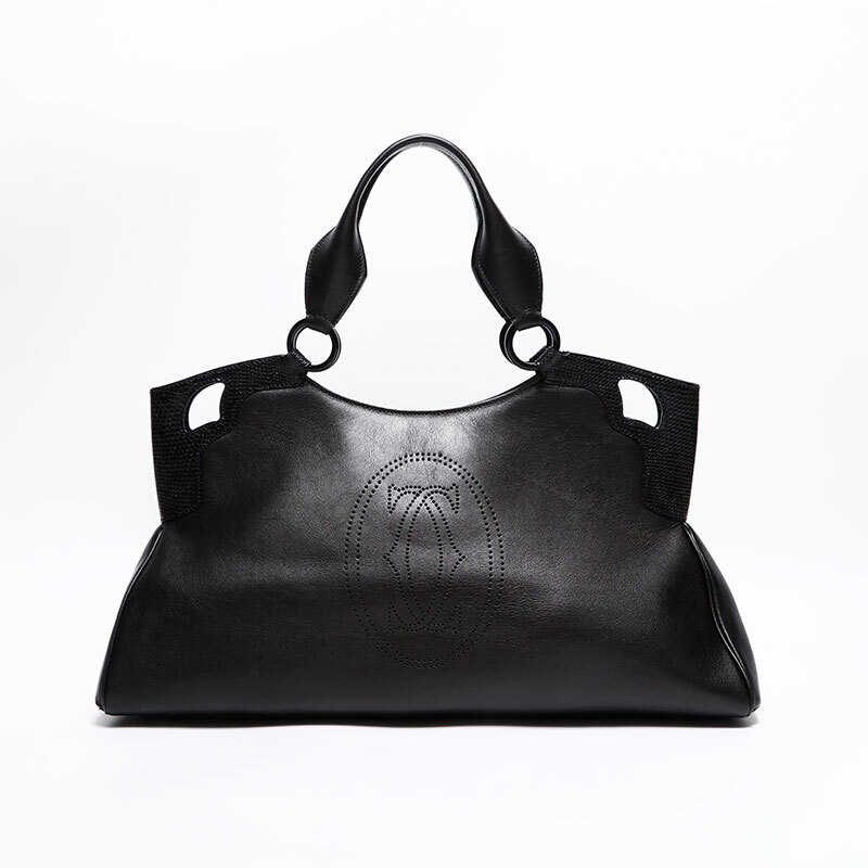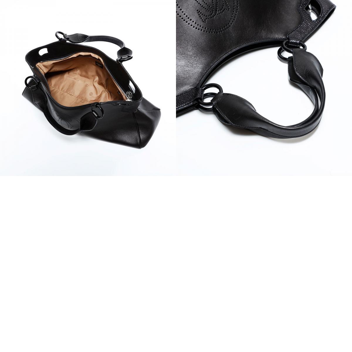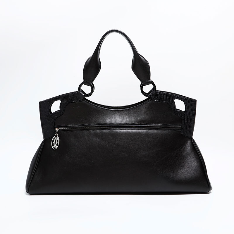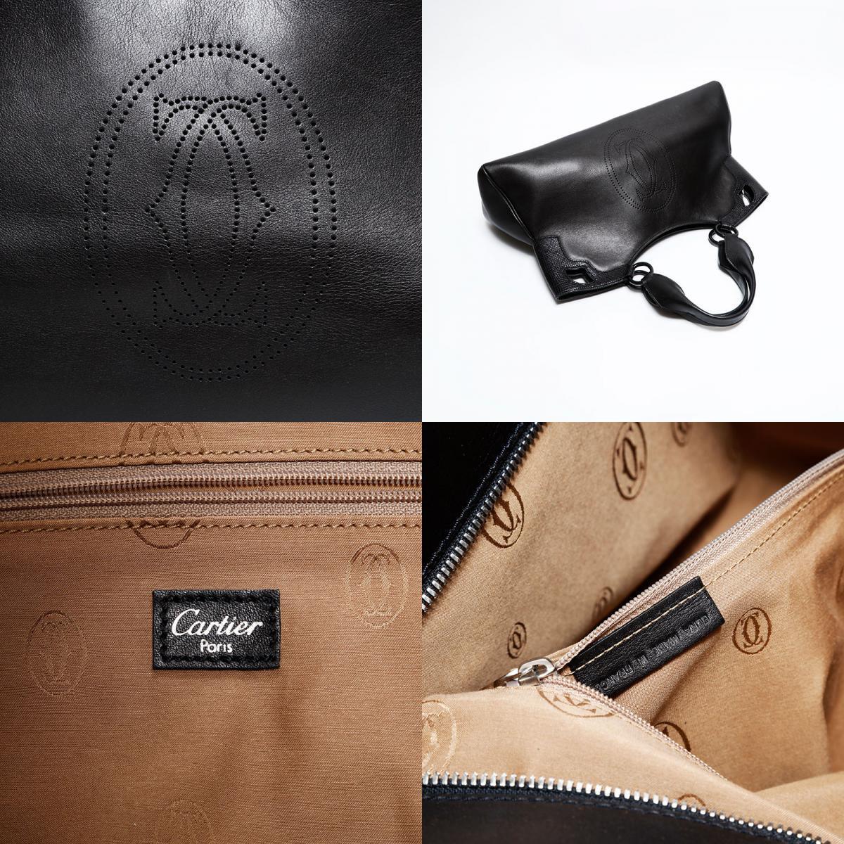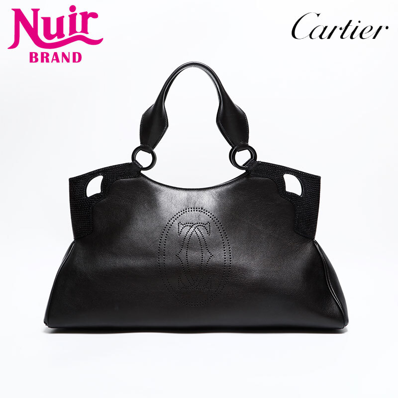 極美品 CARTIER レザー パイソン マルチェロ ドゥ カルティエ ハンドバッグ ブラック