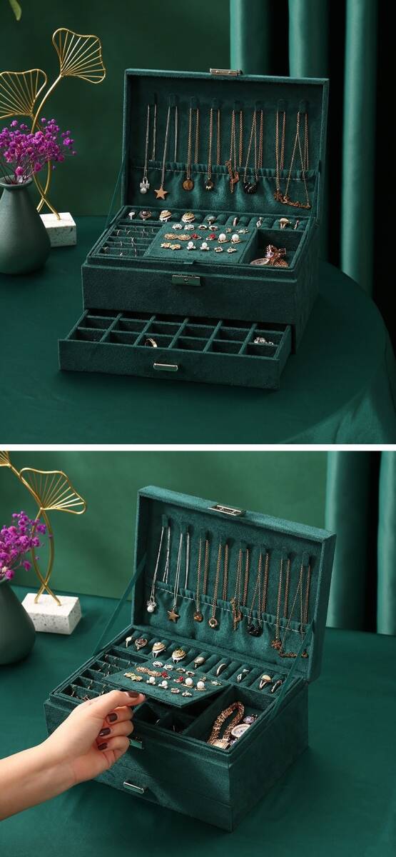 「同梱1万円送料無料」アクセサリーケース ジュエリーケース 宝石箱 小物収納 指輪 ピアス 引出し 大容量 旅行 保管 携帯 多機能