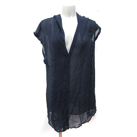 アトウ ato シフォンブラウス フレンチスリーブ シアー フード F 紺 ネイビー /YI レディース