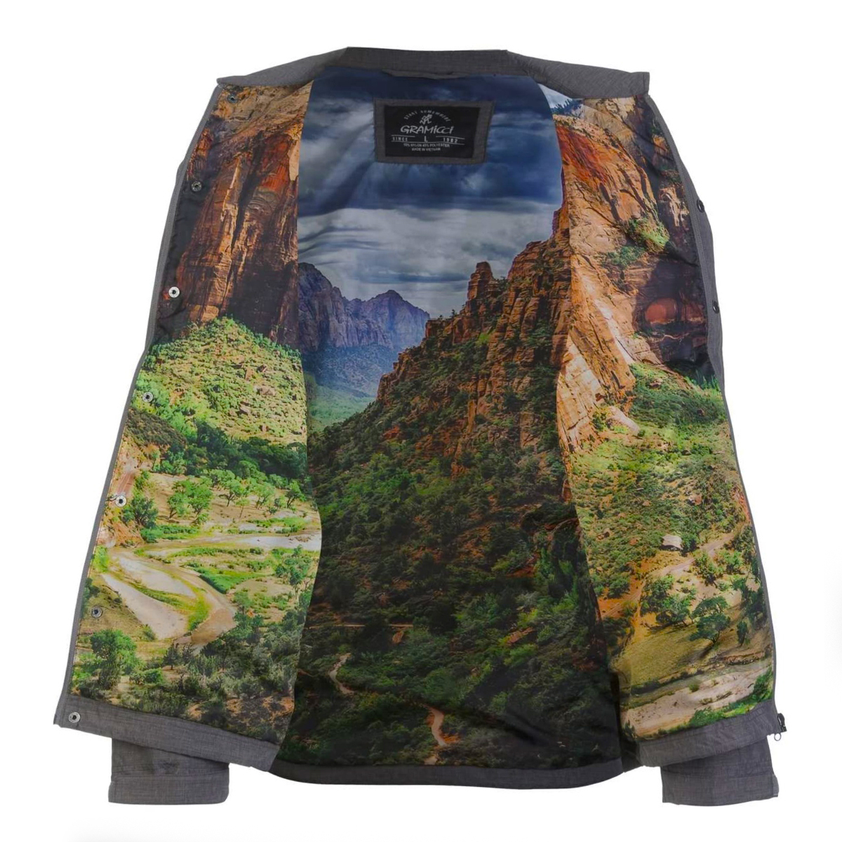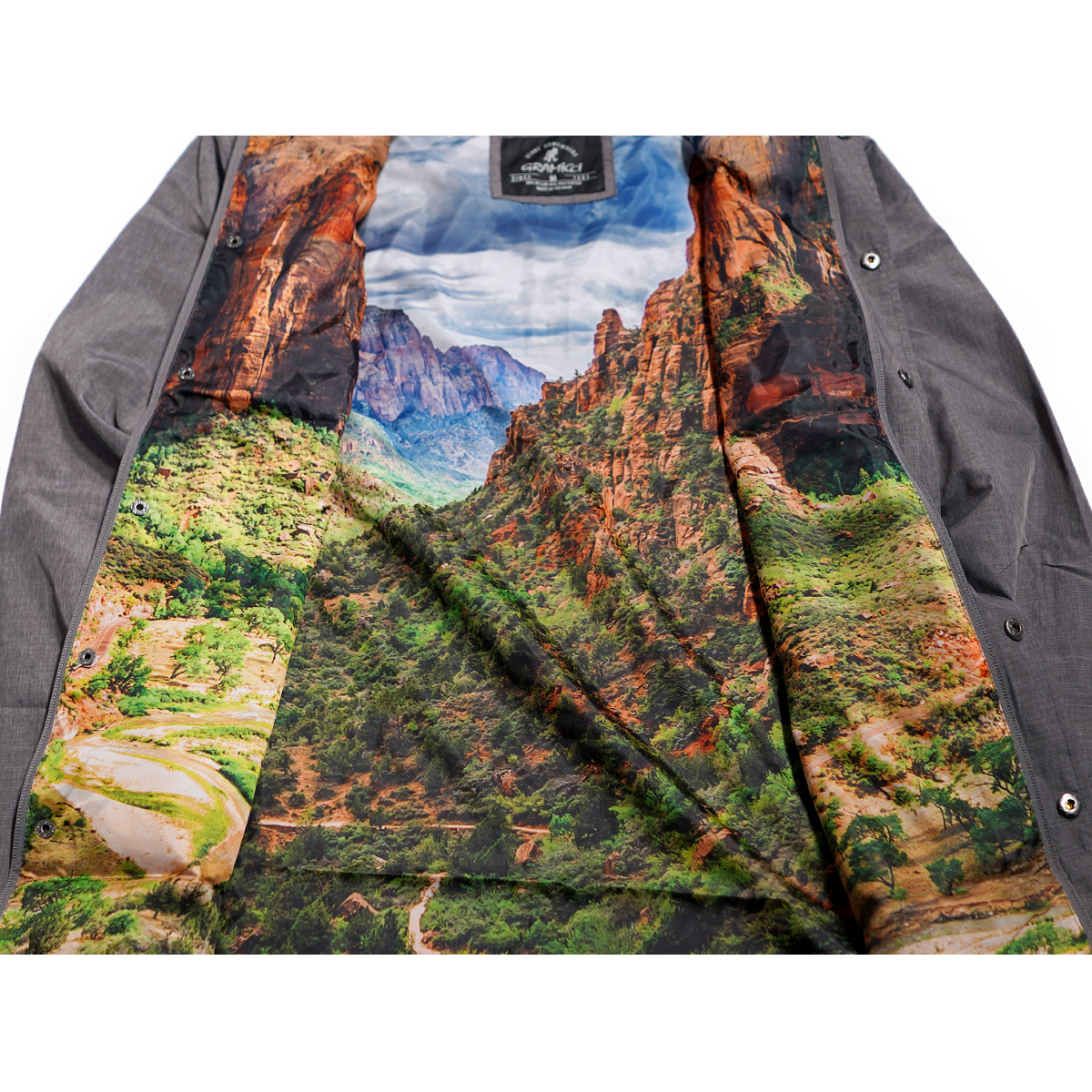 Gramicci EL ENTRENADOR COACH JACKET USA正規取扱店購入 Gramicci EL ENTRENADOR COACH JACKET このコーチジャケット一番の魅力は、何と言っても内装のプリントグラフィックです。 ユタ州の息を呑むようなザイオン国立公園をモチーフにしており、 アウトドアで過ごす時間をもっと増やしたいという気持ちを掻き立ててくれます。 ジャケットの美しさはもちろんのこと、機能的にも優れています。 軽量で耐風性と耐水性に優れたナイロン素材を使用したEntrenadorは、 雨の日でも快適に過ごせるように十分な長さにカットされています。 ジャケットの裾には2つのコードロックが付いており、湿気をシャットアウトしてくれます。 特徴 耐風・耐水性ナイロン メインジッパーを保護するフロントスナッププラケット 2つのハンドジッパーポケット ベルクロウエストタブでフィット感を調整 ボトムの裾のシンチ部分でコードがロックされ、湿気を逃がします。 袖裏地にはスムースナイロンを使用しているので、簡単にオン・オフが可能です。 襟のすぐ下の背中に反射するランニングマンロゴ この商品はアメリカ正規取扱店にて購入100%本物です。 【カラー◆Color】 GREY 【サイズ◆Size】 US Sサイズ (日本のMサイズ相当) 【寸法◆Size】 US S size : 身幅55cm 肩幅45cm 着丈75cm 袖丈64cm 【素材◆Material】55% nylon 45% polyester 【原産国◆Country of origin】 VIETNAM ※現物に近いカラーに撮影しておりますがモニターカラー設定、または印象によりカラー誤差があることをご理解よろしくお願い致します。 | ||