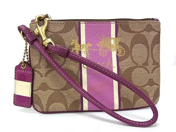 COACH コーチ シグネチャー PVC×レザー マルチポーチ マルチケース 小物入れ レディース ブラウン系×パープル系 DJ6983
