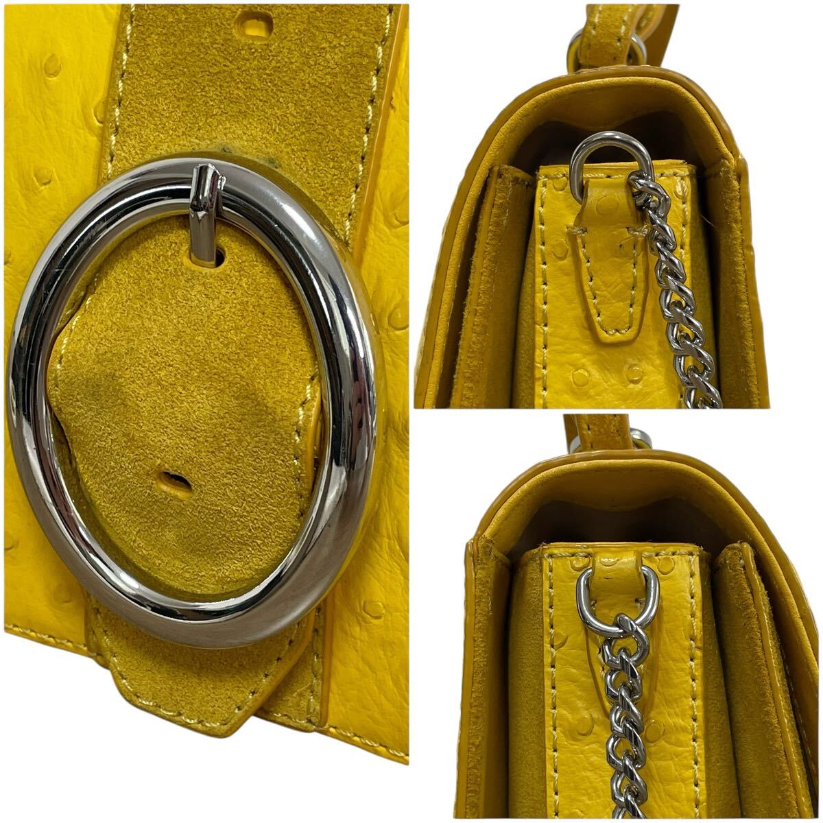 【希少カラー】BANANA REPUBLIC オーストリッチ 2way ミニ バッグ ショルダー ハンド スエード 本革 レザー 切替 シルバー金具 チェーン