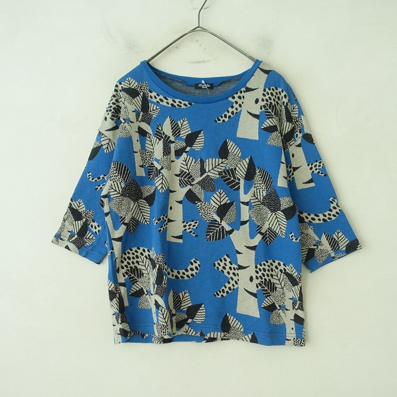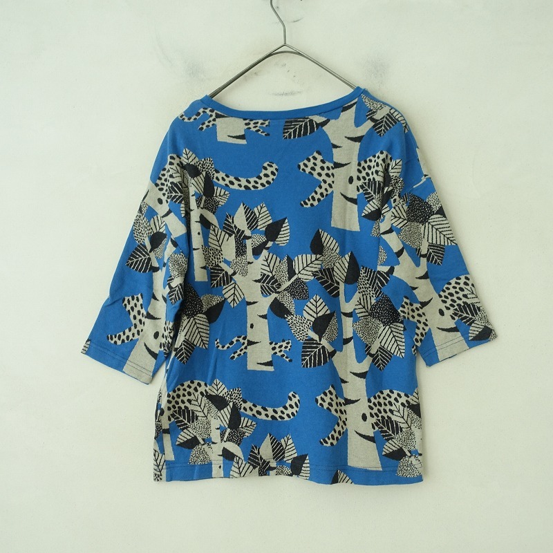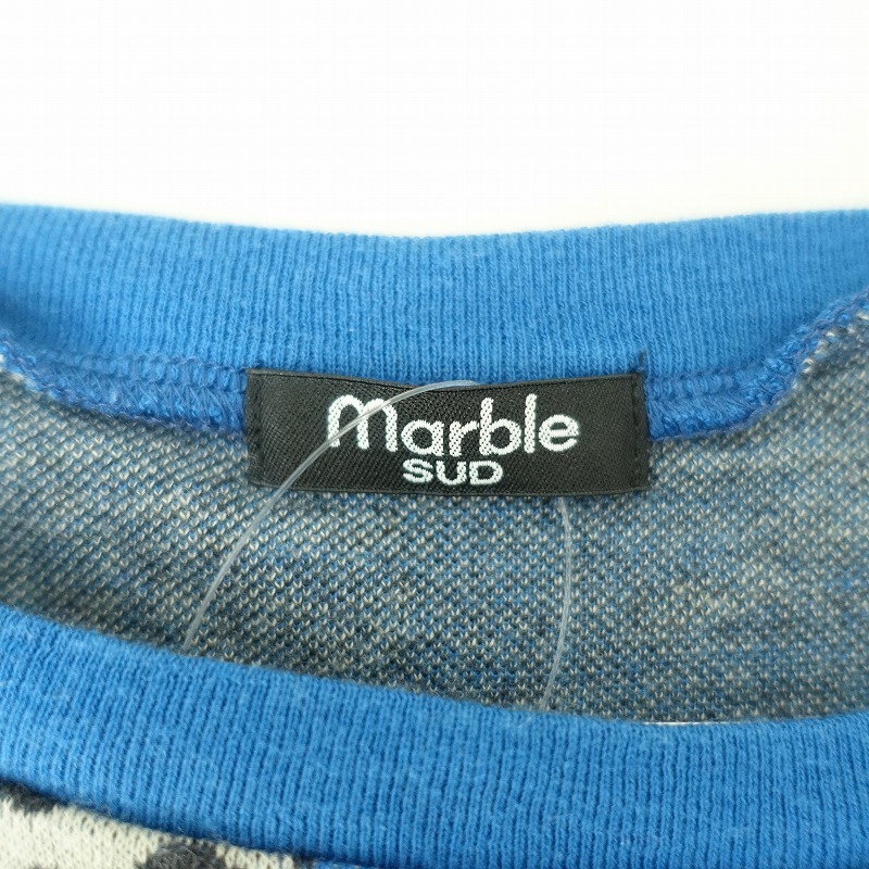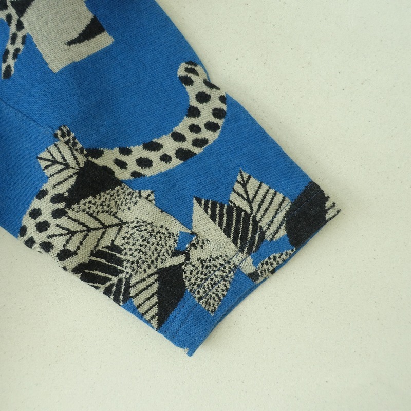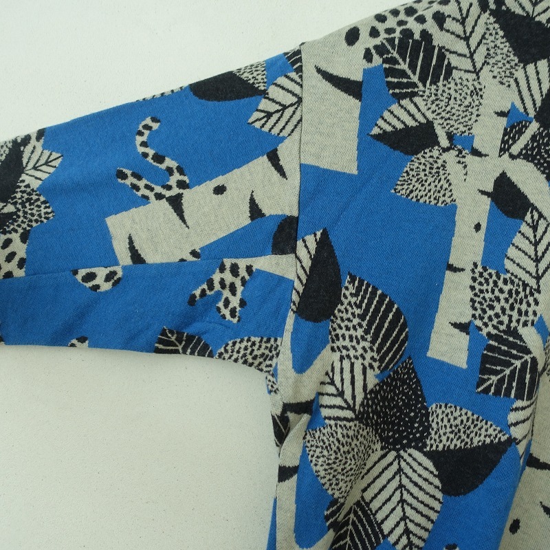 | marble SUDの総柄ニットです。カラーはブルー・ブラック・淡いライトグレージュで、微毛羽感のある総柄の少し薄手のニット素材です。プルオーバータイプで、ネック周りはリブ生地であしらわれております。 |