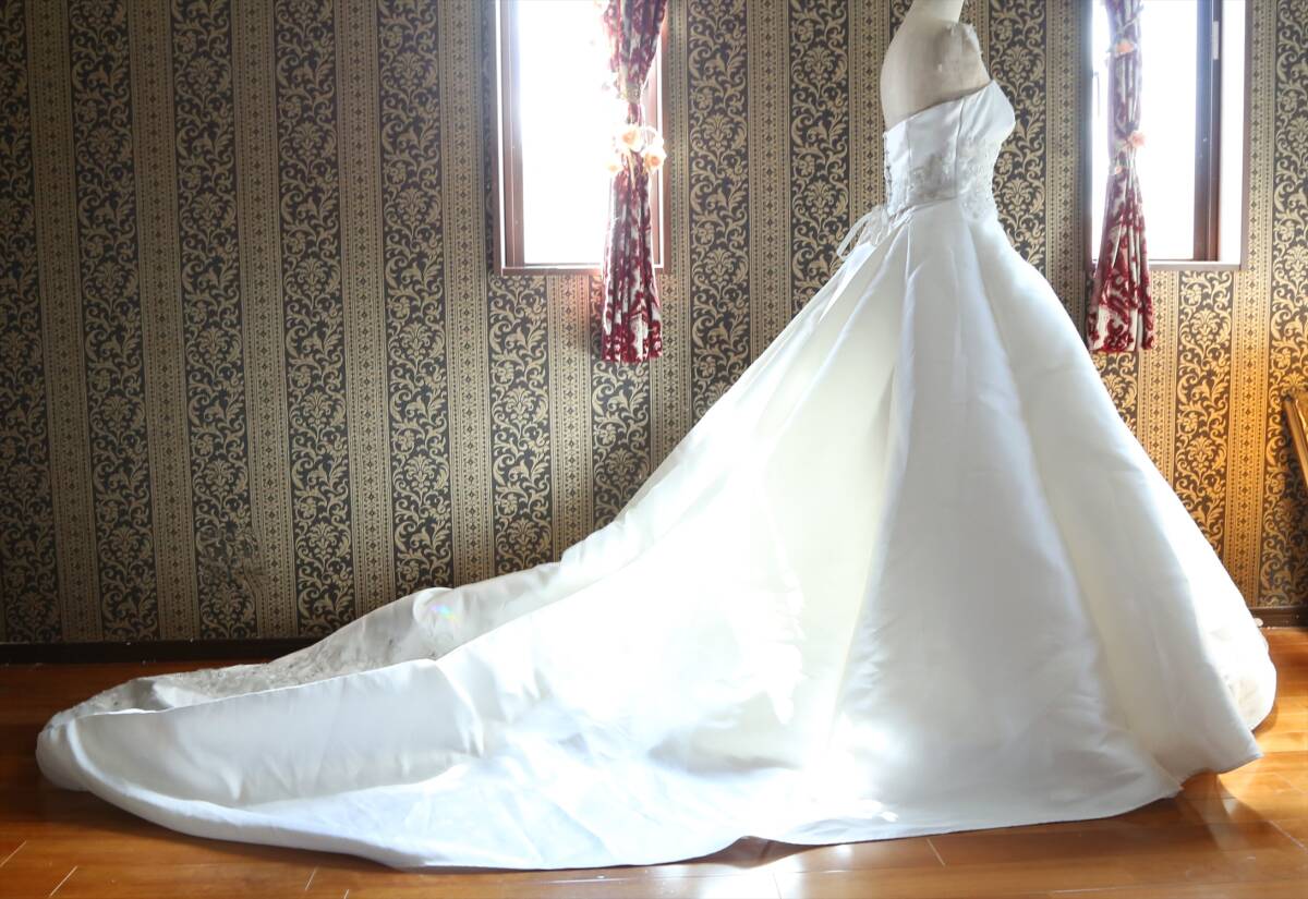 実寸はバスト約8492cm、ウエスト約6472cm、前中心から裾までの丈約137cm、脇下から裾までの丈135cm、後ろ丈約245cm、多少の誤差はご了承ください