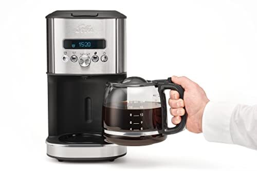 | 商品説明 | 100年を超えて世界60ヶ国以上で愛され続ける、信頼のスイスブランドSolis。 香り高いコーヒーを抽出するアロマ機能付き。分量の少ないコーヒー粉でも香り豊かなコーヒーを抽出。 均一に熱いお湯を注ぐことができるシャワーヘッドテクノロジーで芳醇なアロマを抽出。 好きな時間に合わせて贅沢な1杯を。 24時間対応のタイマー機能付き。起床時間など好きな時間に合わせて美味しいコーヒーが楽しめます。 1.8?容量の内蔵タンク、18杯入るガラス容器。1度に1杯から18杯まで楽しめる大容量。 適切な温度で、風味を損なわずに30分間保温。 商品内容: 本体、ガラス容器ハンドル付 付属品: 計量スプーン、フィルターホルダー、本体サイズ:(W×D×H):21cm×37cm×27.5cm、本体質量:約2.85kg、消費電力:950W、保証期間:1年 注意)メタルフィルターは別売りで販売しています。 注意)メタルフィルターを使用しない場合、紙フィルターが必要です。