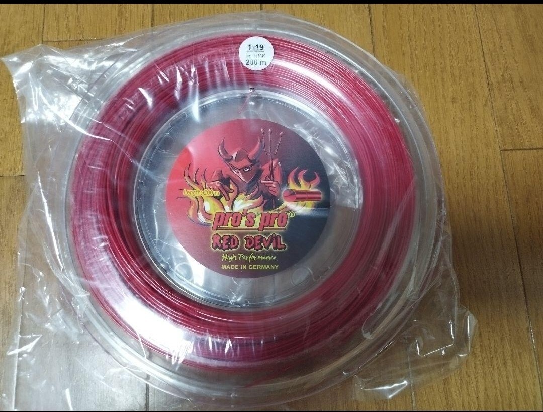 高性能なテニスガット、レッドデビル、1.19mm、200m。