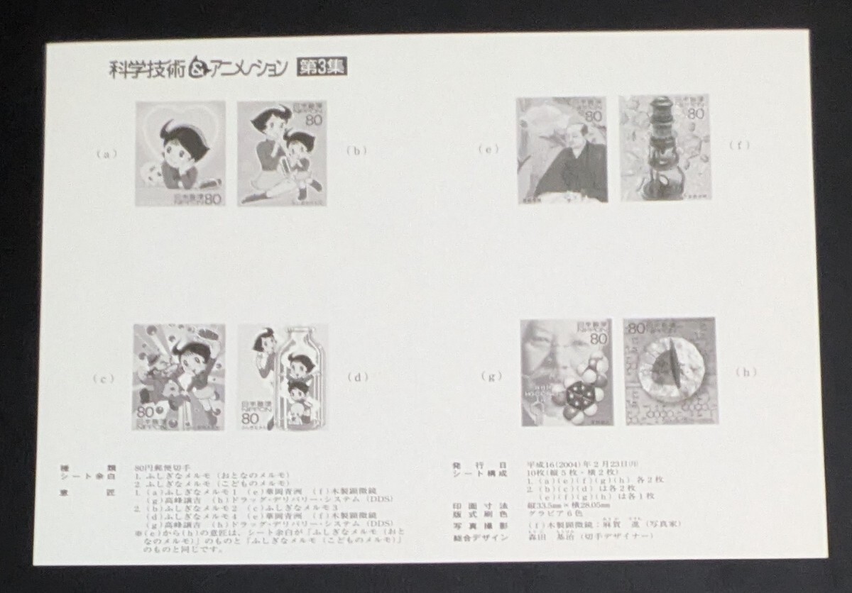 2004年・記念切手-科学技術とアニメ・ヒーロー・ヒロインシリーズ第3集(解説書付)シート(生・ふしぎなメルモ2)