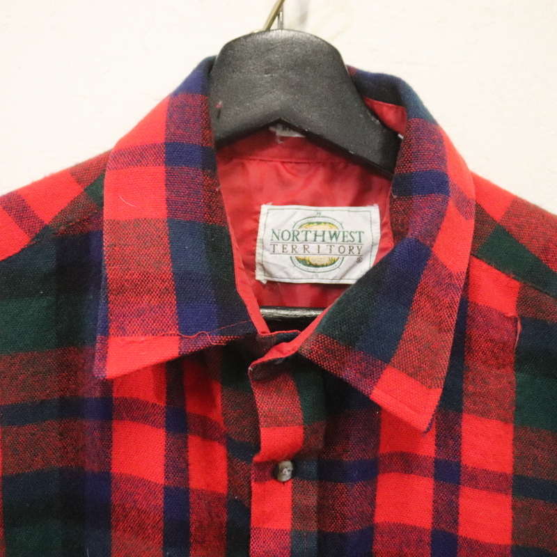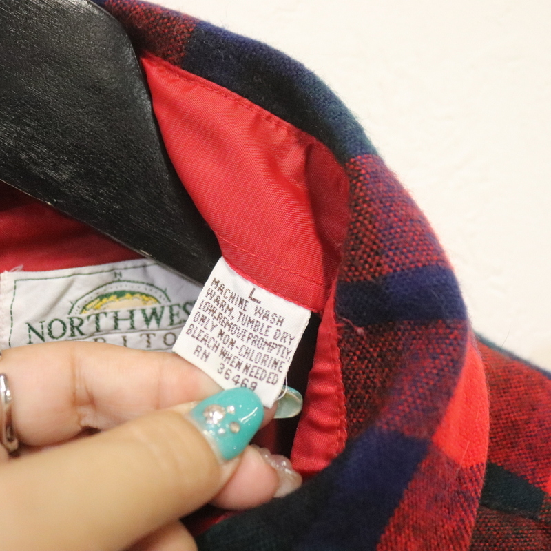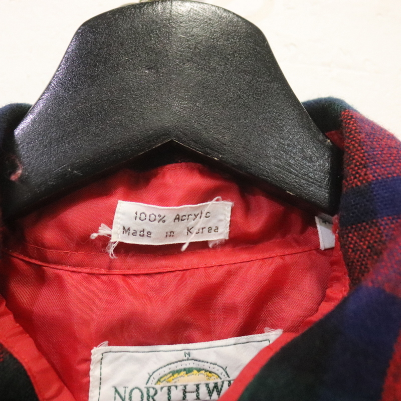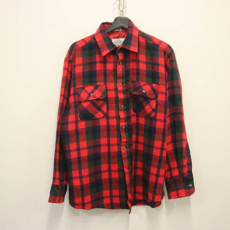 T128 80sビンテージ NORTHWEST 長袖アクリルシャツ■1980年代製 表記Lサイズ レッド 赤 チェック アメカジ ストリート 古着 古着卸 激安