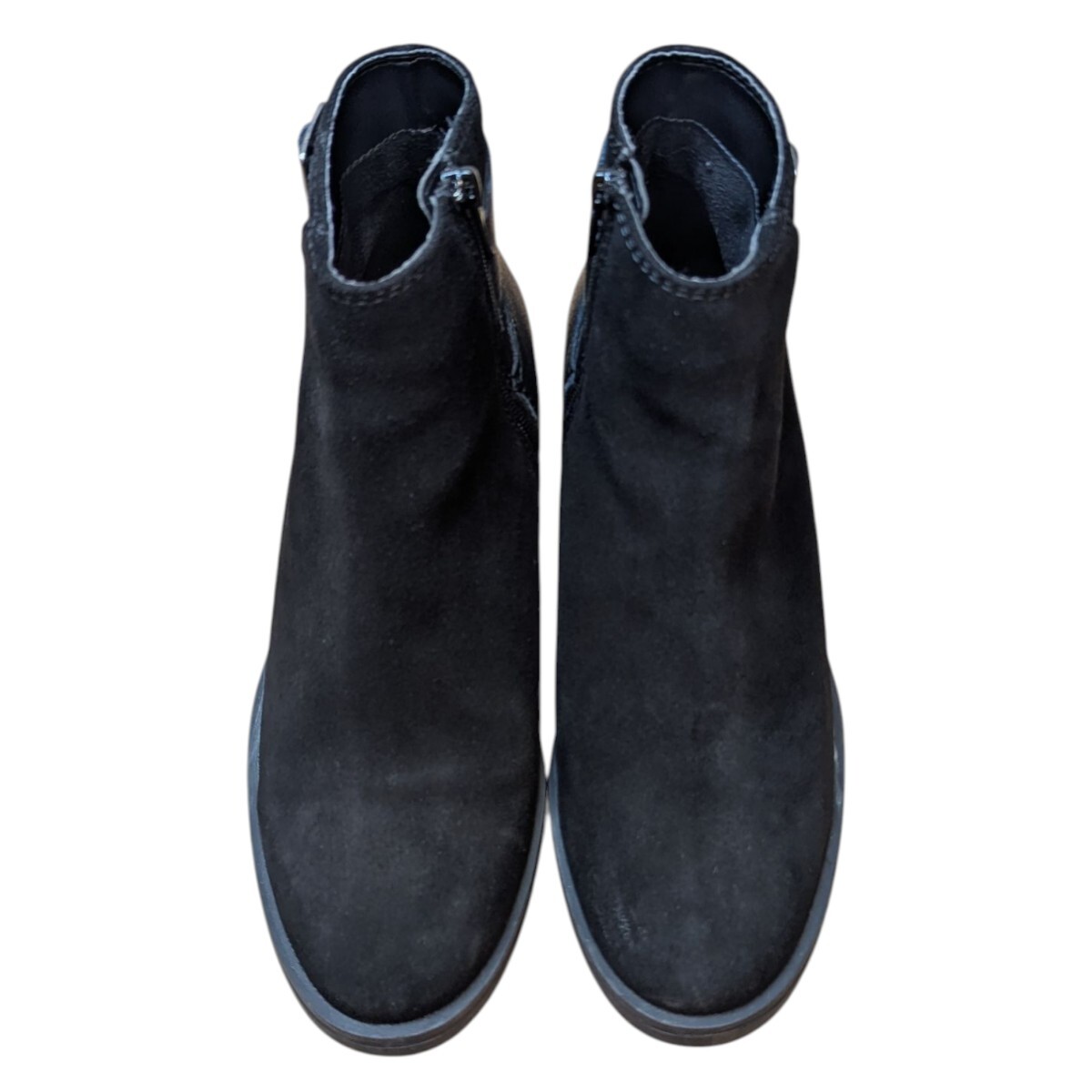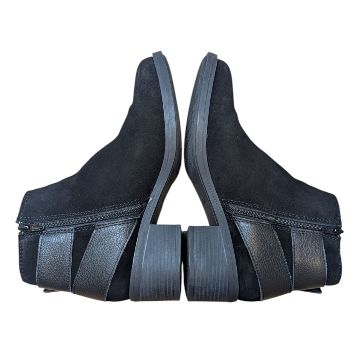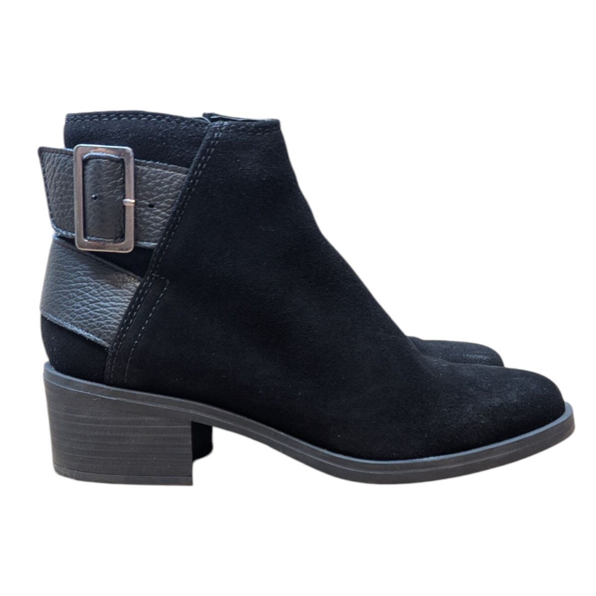 太目ベルトがポイントのショートブーツ。バックルと太目のベルト使いで、横顔にも後ろ姿にも表情がある、シンプルながらもおしゃれな一足。異素材の組み合わせもポイントです。安定感のある太ヒールと、柔らかなクッションで快適な履き心地。解剖学的観点から最適な位置に配された二重密度の衝撃吸収クッションであるCushion Plusをインソールに搭載。快適な履き心地でに足への負担を軽減します。