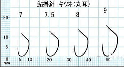 鮎掛針 きつね 丸耳 7号、7.5号、8.5号 1,000本