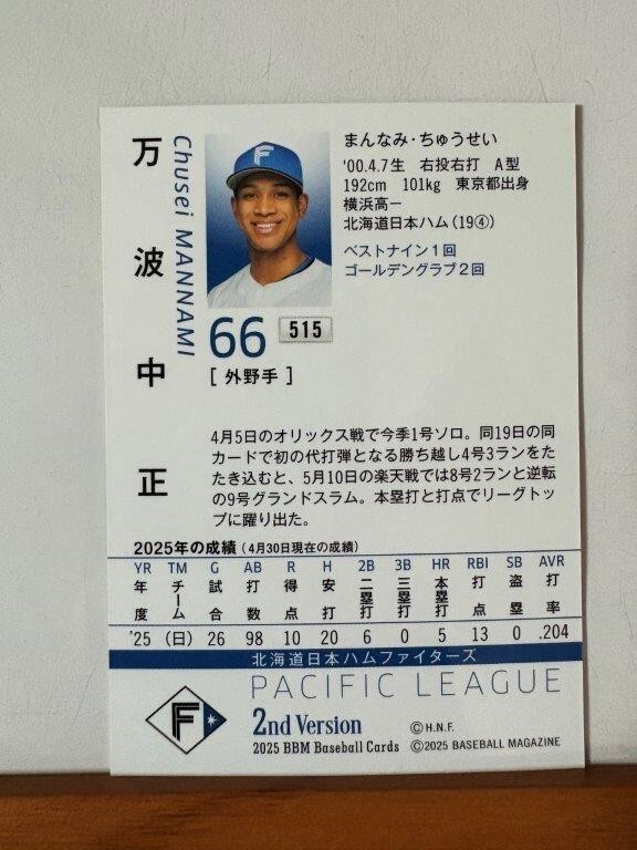 【2025 BBM 2nd】515万波中正(北海道日本ハムファイターズ)レギュラーカード
