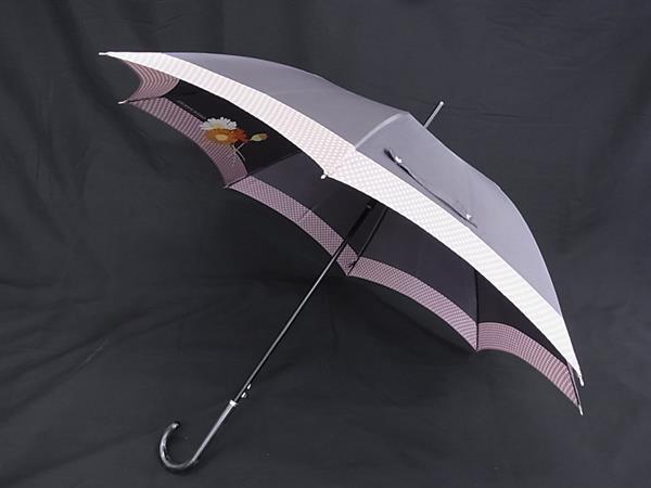 ■美品■ SONIA RYKIEL ソニアリキエル フラワー 花柄 長傘 雨傘 高級傘 アンブレラ レディース グレー系×ベージュ系 DI4879