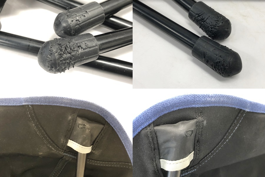 擦れ、傷、お汚れ等ございます。脚先のゴムにとがったもので挟んだか刺さった際に出来たと思われる傷みがございます。
