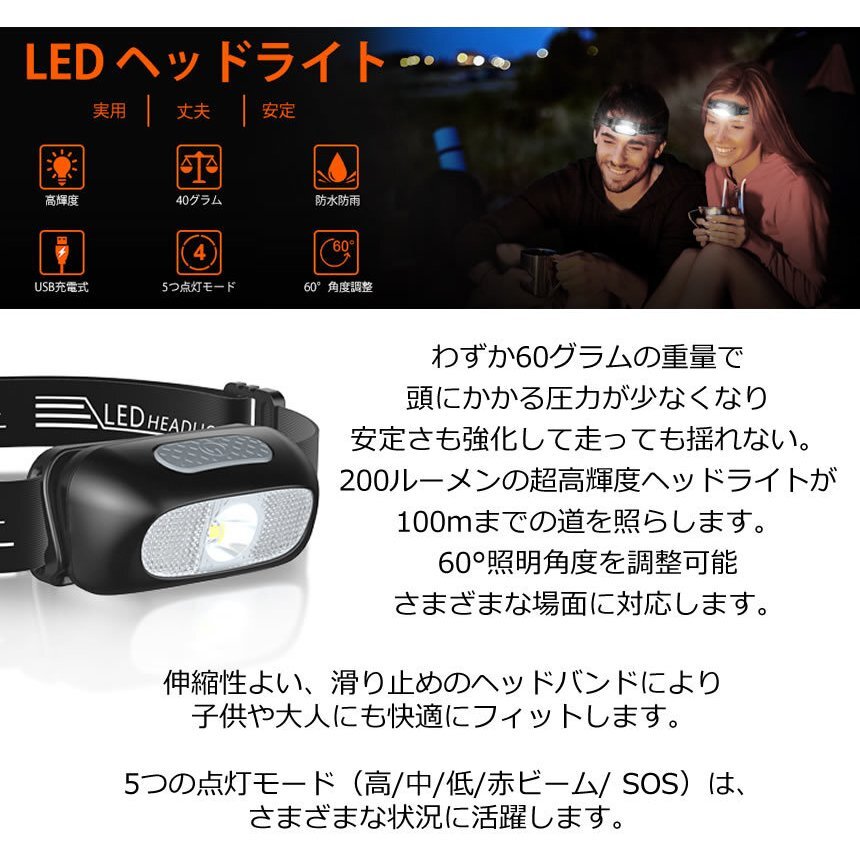 へっどらいとは5種の点灯モードを提供:ホワイトビームの高・中・低;赤いビーム:常に点灯;緊急用のSOS点滅。