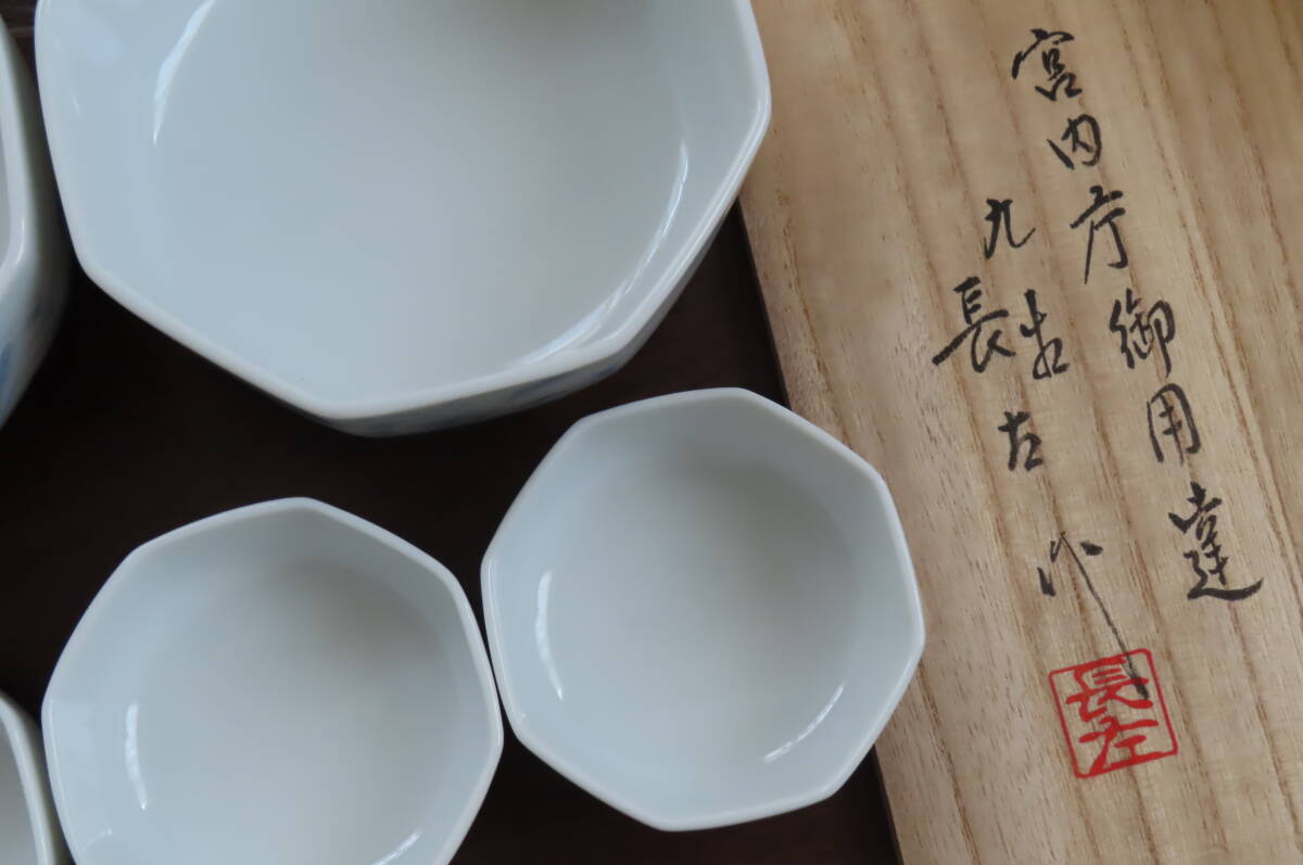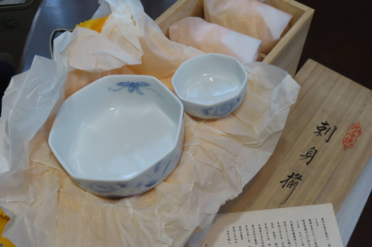 【未使用】藍九谷焼/妙泉陶房/山本長左★刺身揃5客セット