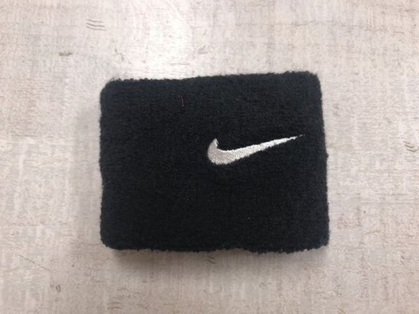ナイキ NIKE スポーツ トレーニング フィットネス サポーター リストバンド 男女兼用 ロゴ刺繍 黒 です。