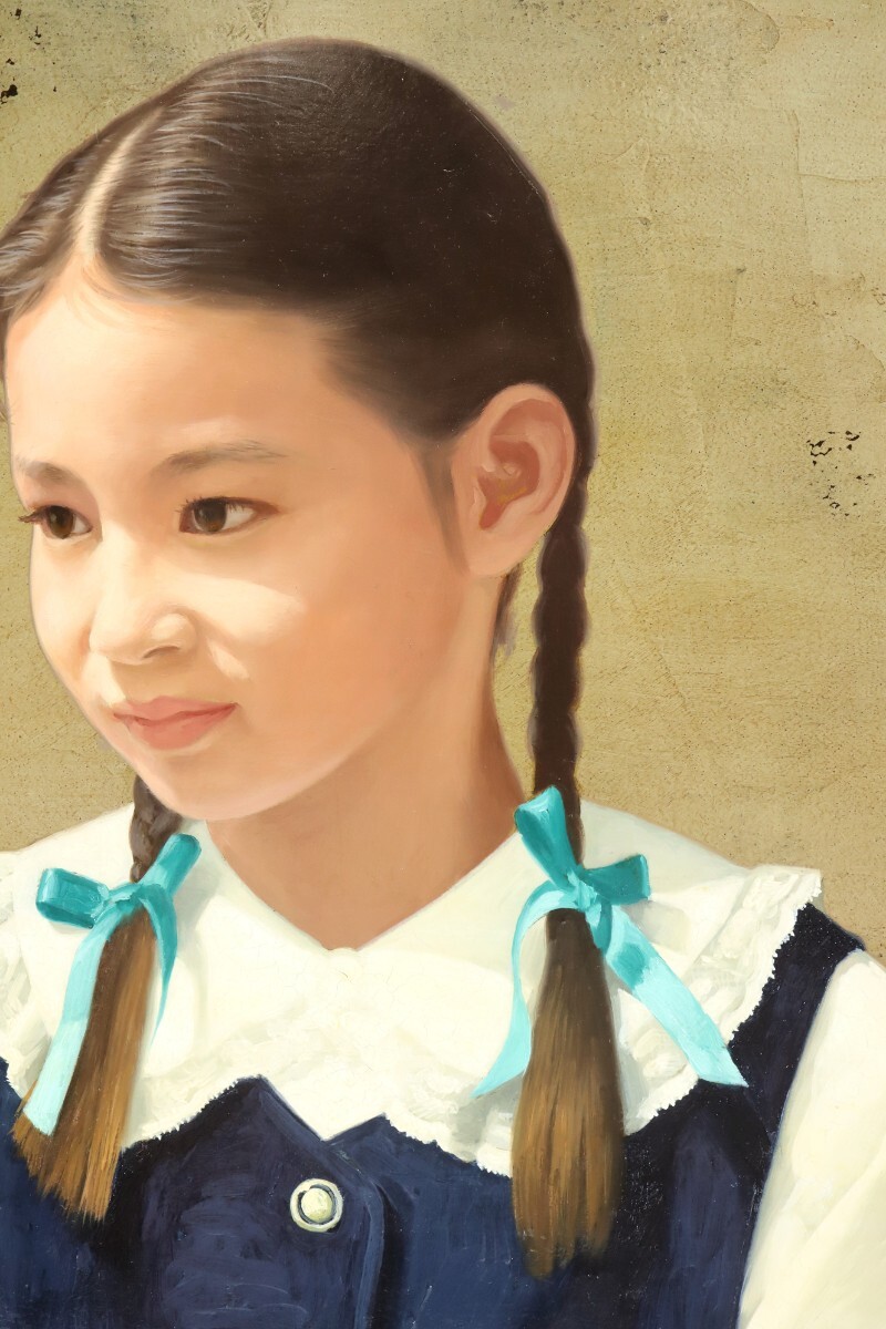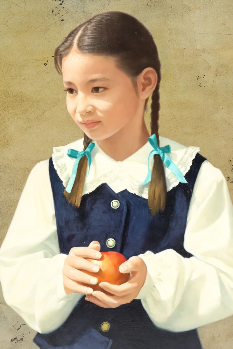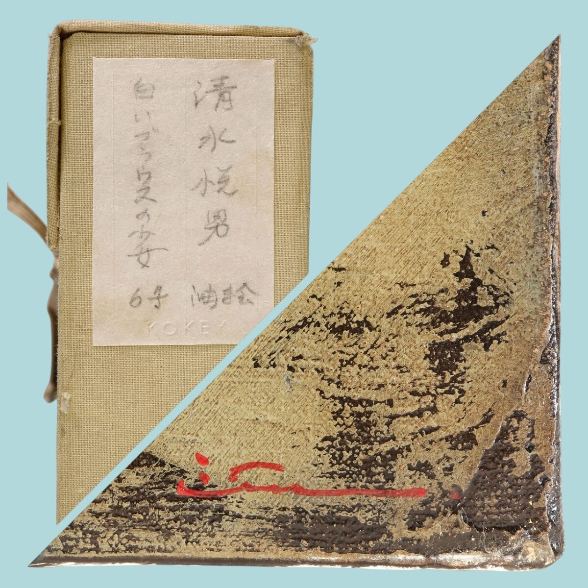 真作 清水悦男 油彩「白いブラウスの少女」画寸 F6 長野県出身 無所属 卓越した描写力、巧みな画面構成 清楚で可憐 緊張感ある少女像 11442