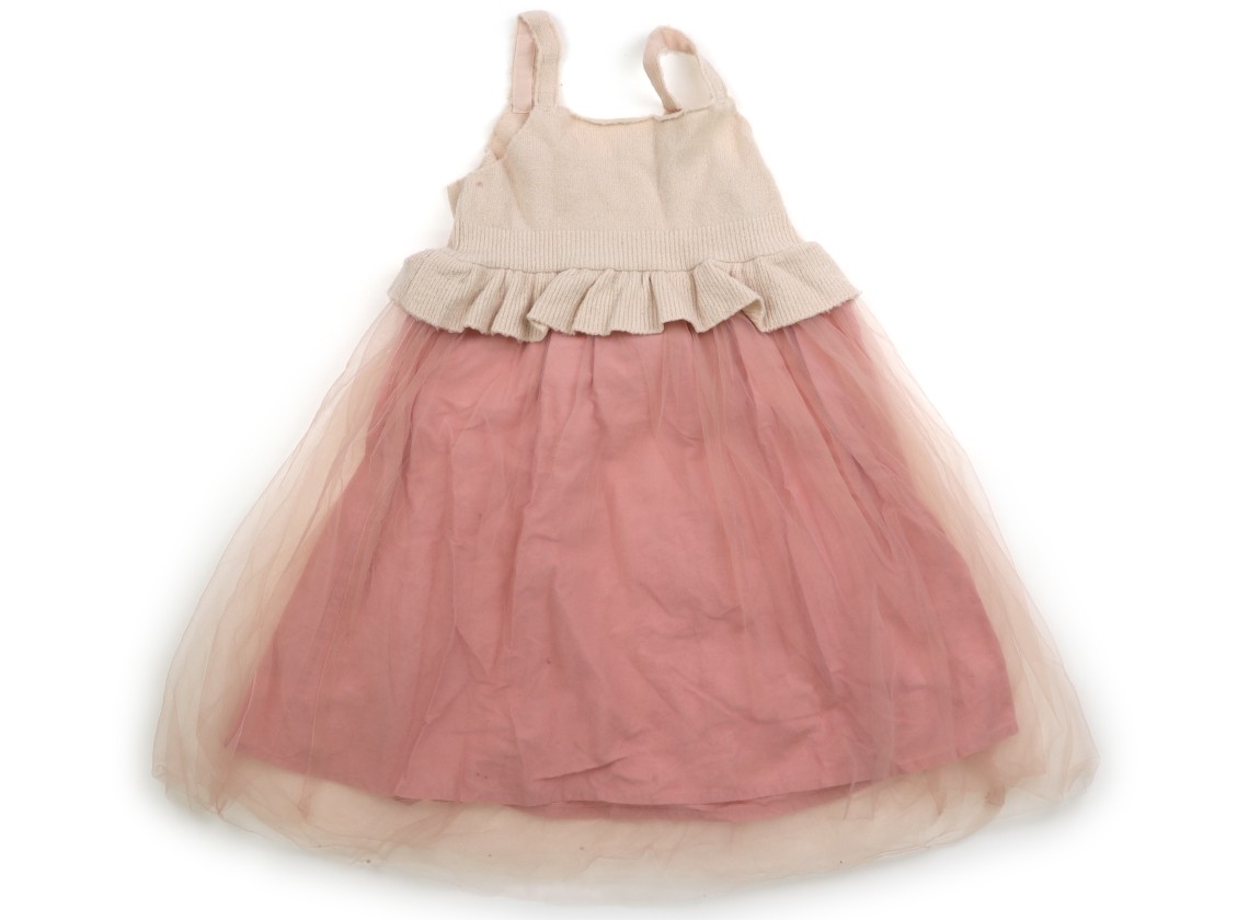 トップスはアクリル・ナイロン・ポリウレタンのニット地で、毛玉・毛羽立ちあり。スカートはチュール2枚・ピンク地の3枚重ねで、ピンク地にホコリ付着あり。