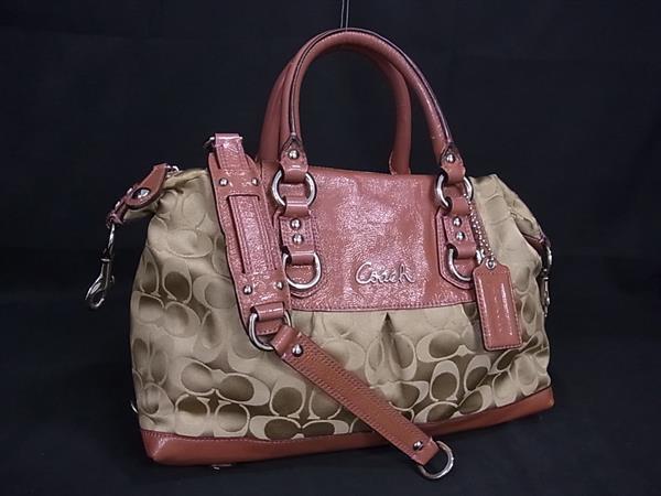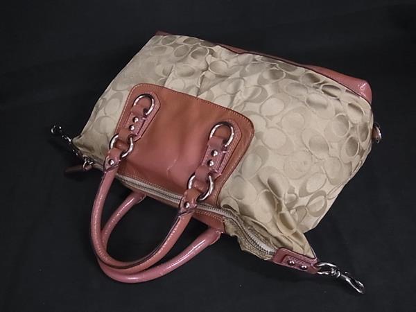 1円 COACH コーチ F15448 シグネチャー キャンバス×パテントレザー 2WAY ワンショルダーバッグ ハンドバッグ 肩掛け ブラウン系 BM9141