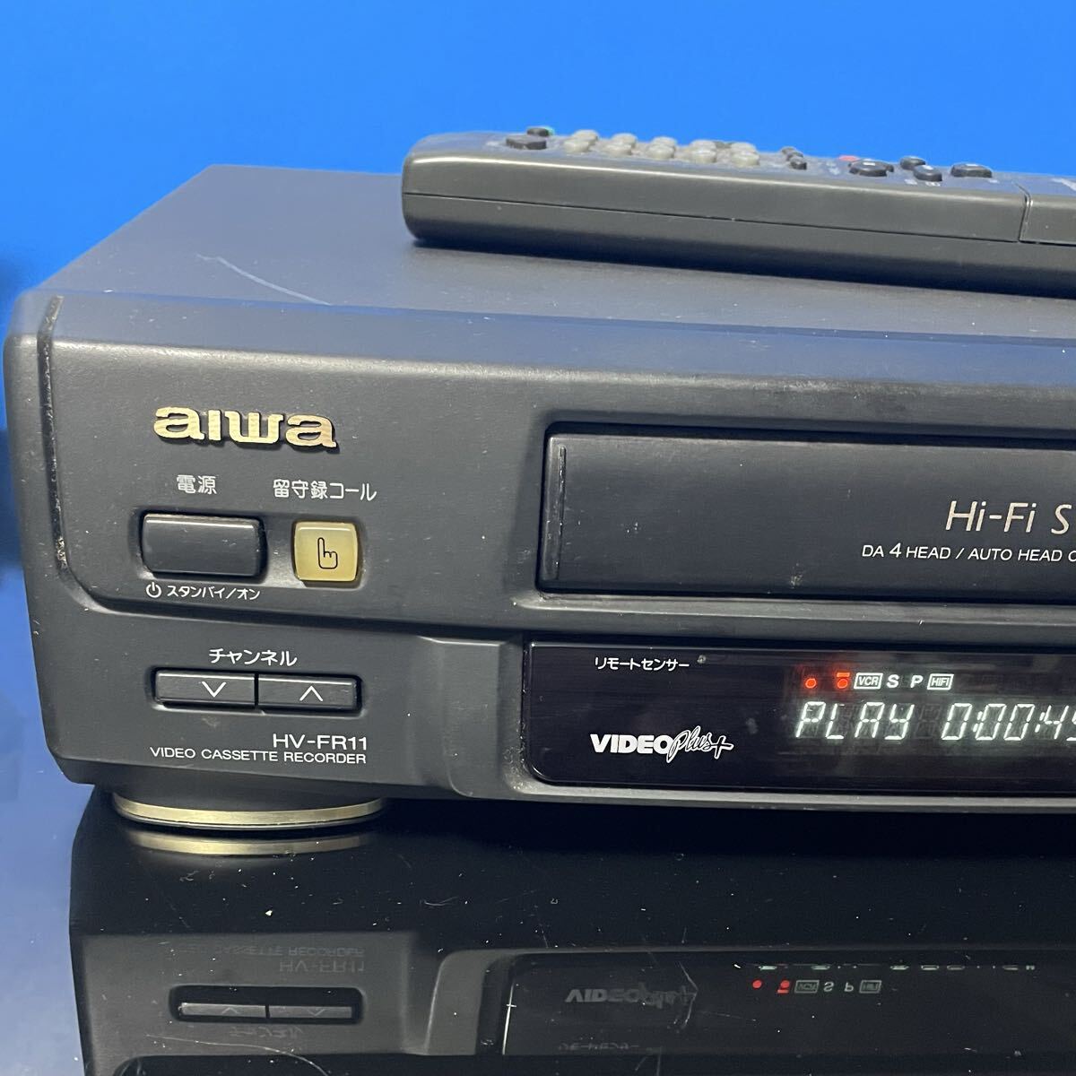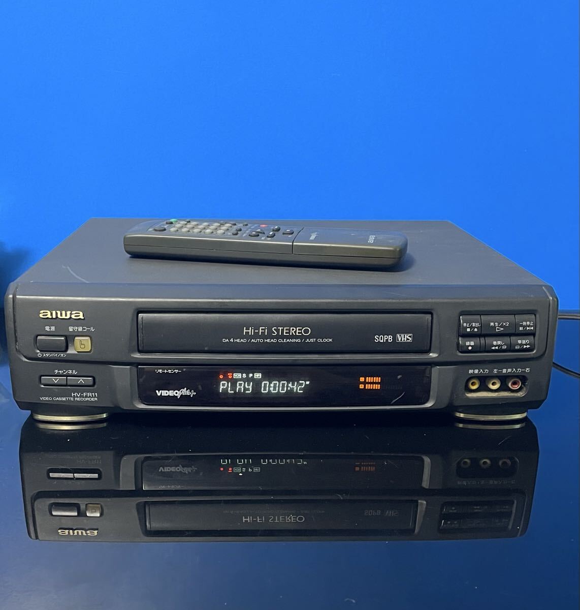 ハイファイステレオ録音機能を備えたコンパクトなaiwaのVHSビデオデッキ。