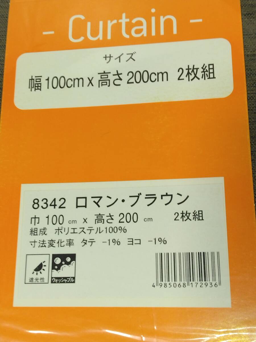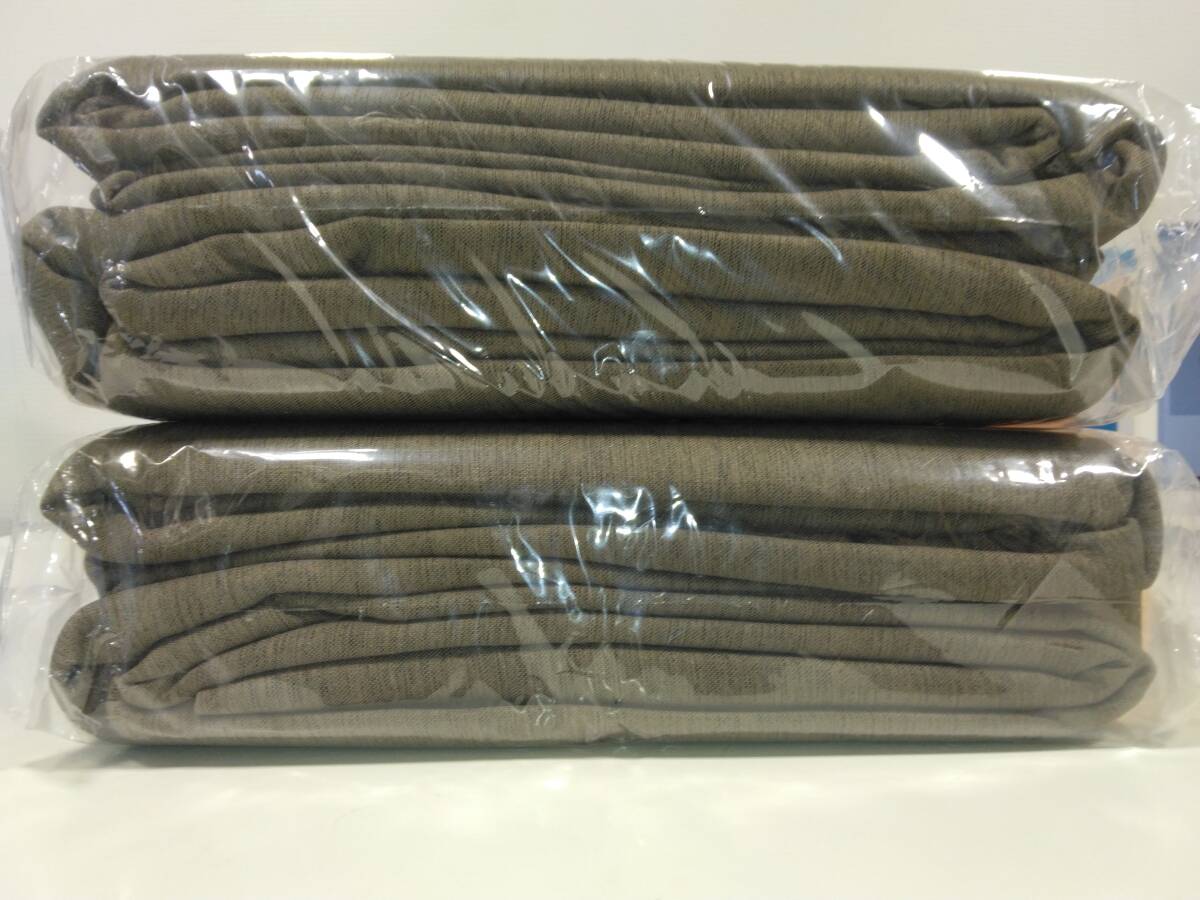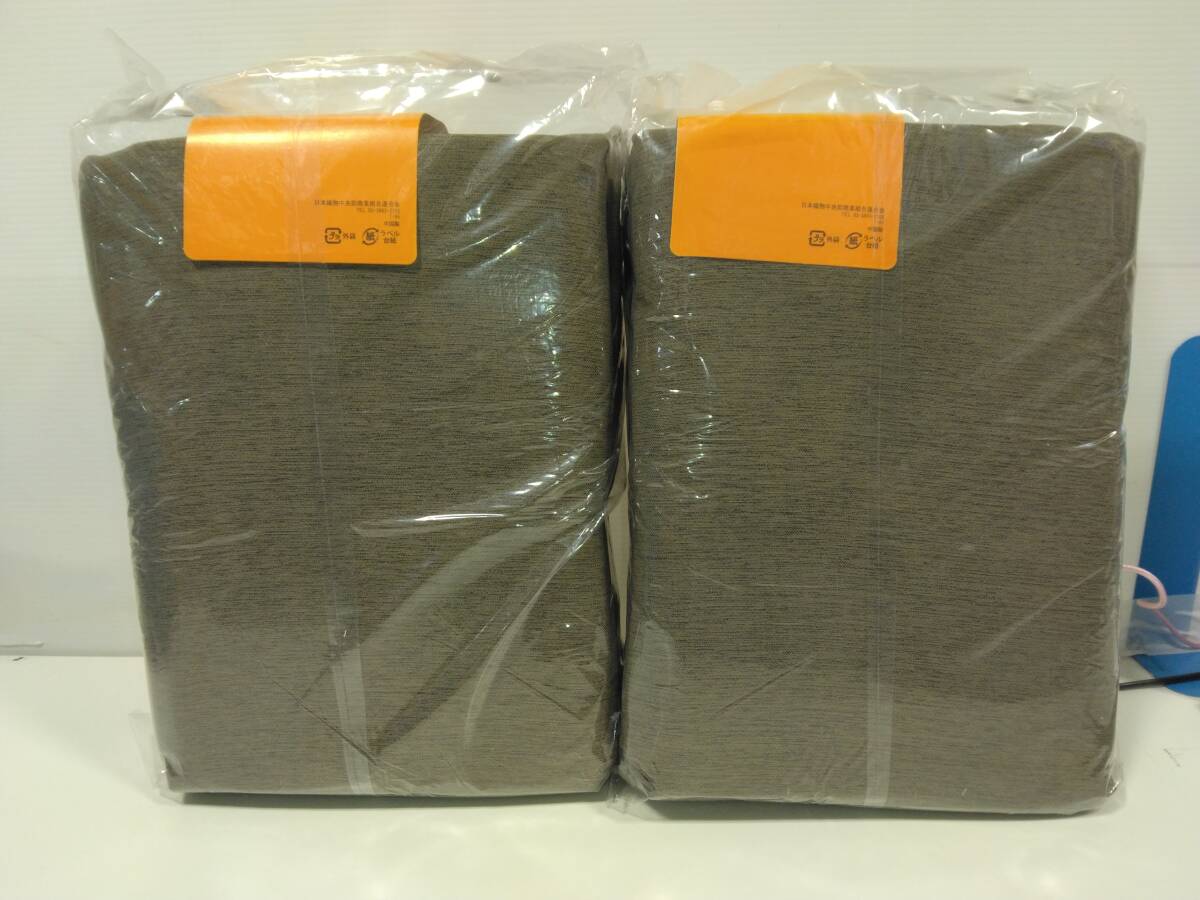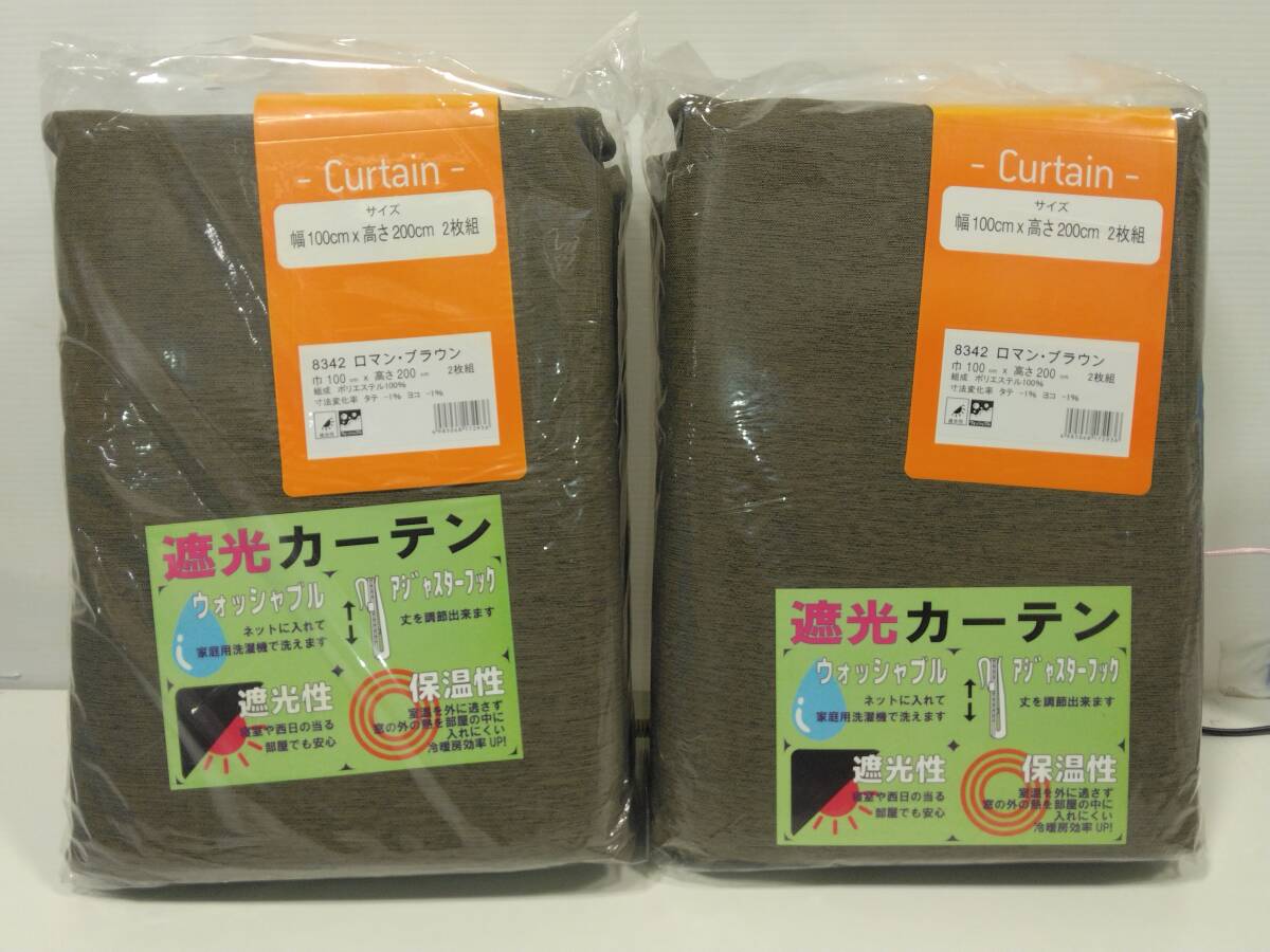 □B未使用 遮光カーテン2枚組 2組 巾100㎝ 丈200㎝ 茶色系/模様入り 洗濯機使用可 冷暖房効率的 保管品