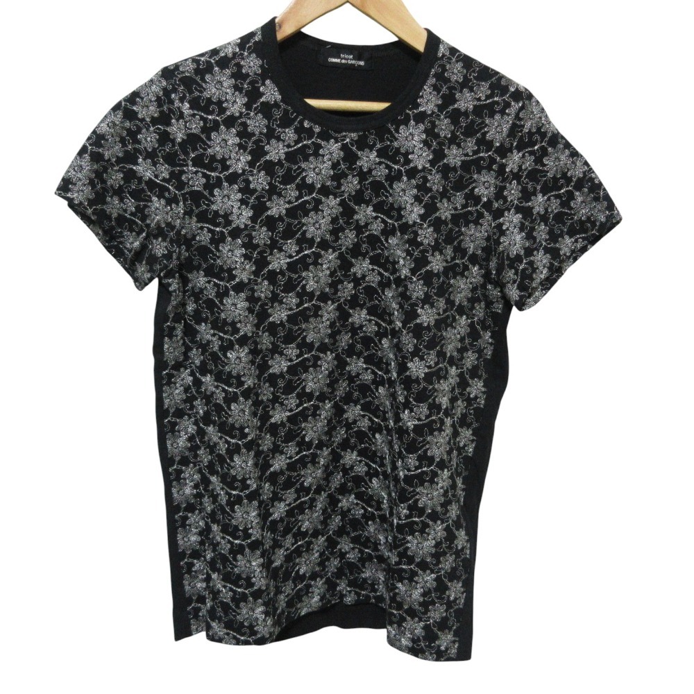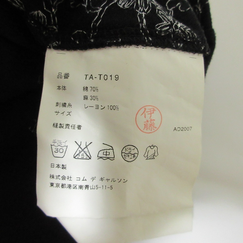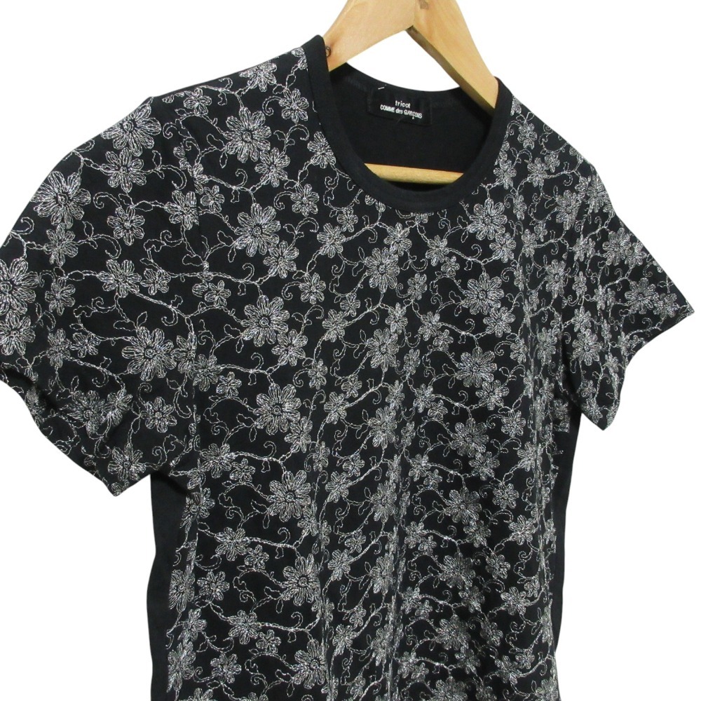 美品 tricot COMME des GARCONS トリココムデギャルソン フラワーエンブロイダリー リネンブレンド 半袖 Tシャツ カットソー ブラック