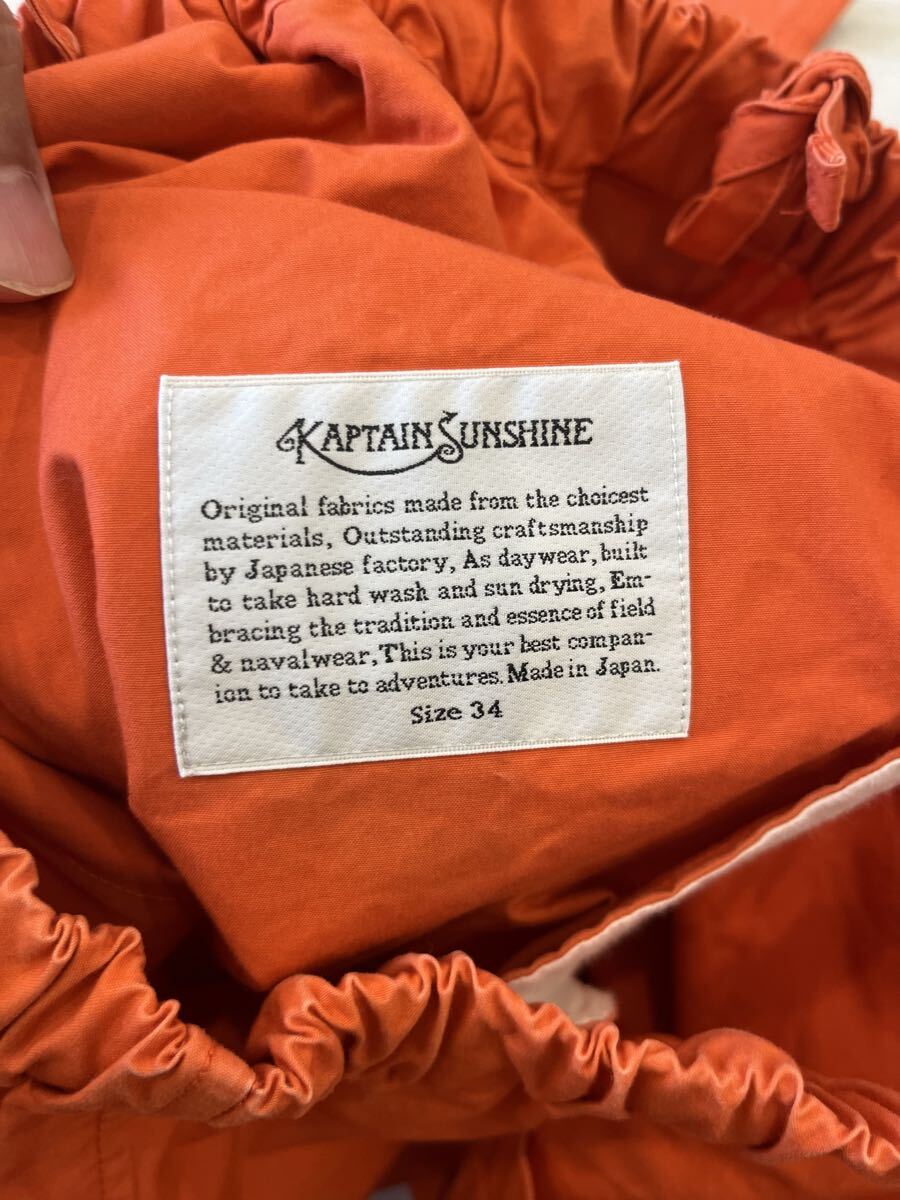 100%コットン製のオレンジ色のワークパンツ、サイズ34。