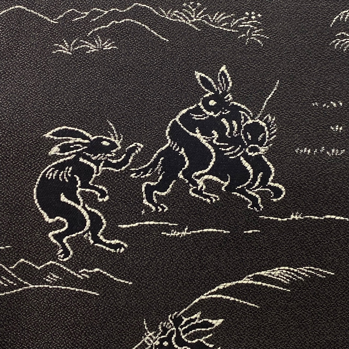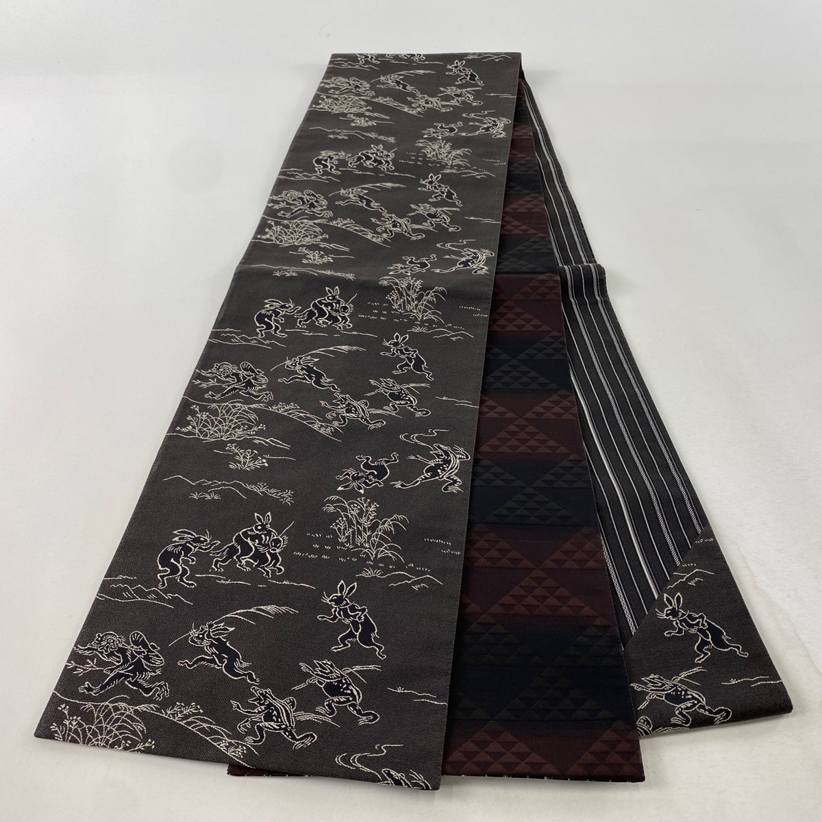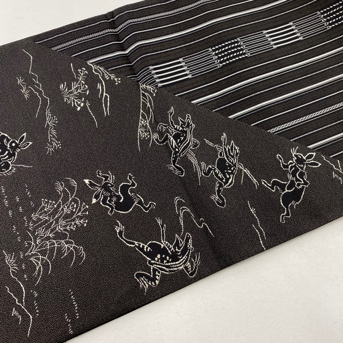| 袋帯 逸品 鳥獣戯画 墨色 お太鼓柄 正絹 【中古】 |