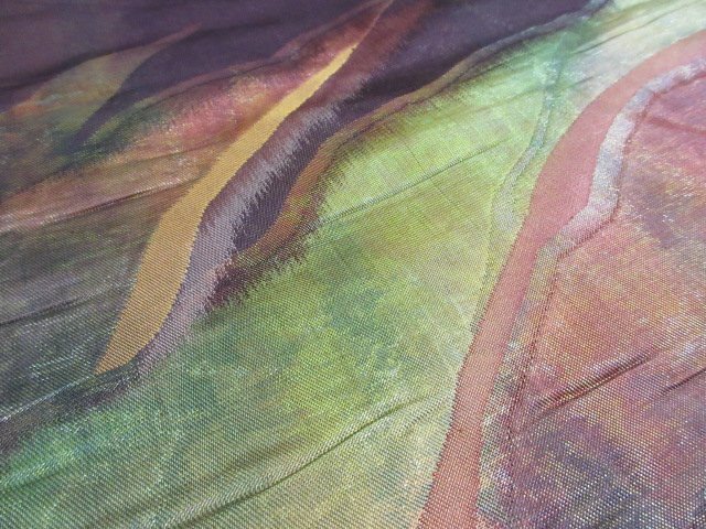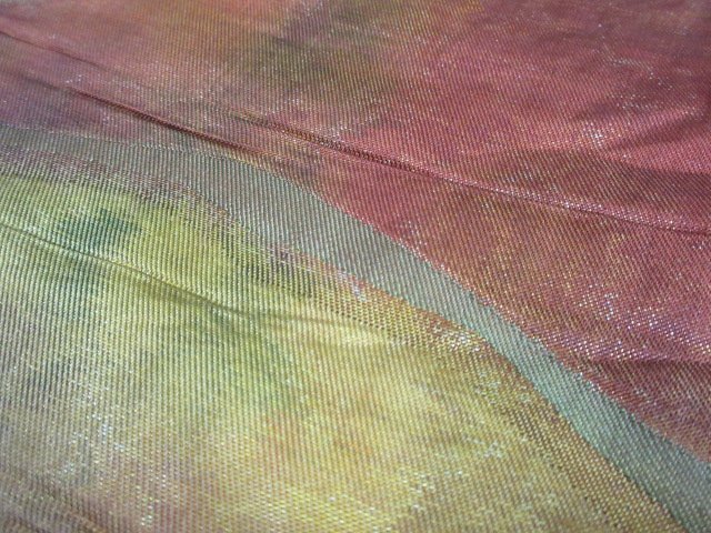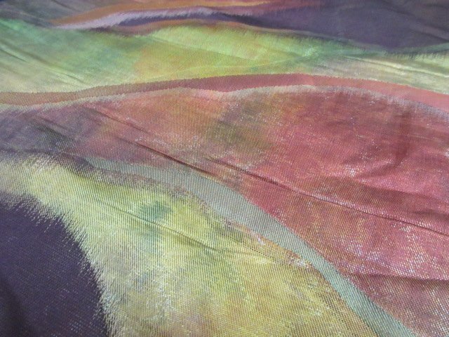 | 商品名 | 1円 良品 名古屋帯 正絹 和装 和服 グラデーション 幾何学抽象 六通柄 お洒落 九寸帯 長さ348cm【夢職】★ |