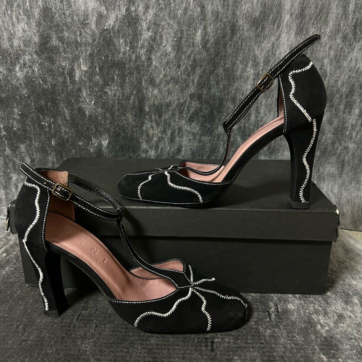 MARNI マルニ スエードパンプス ストラップパンプス ヒール新品 36 23cm相当 ブラック ヒール9.8cm *Ei