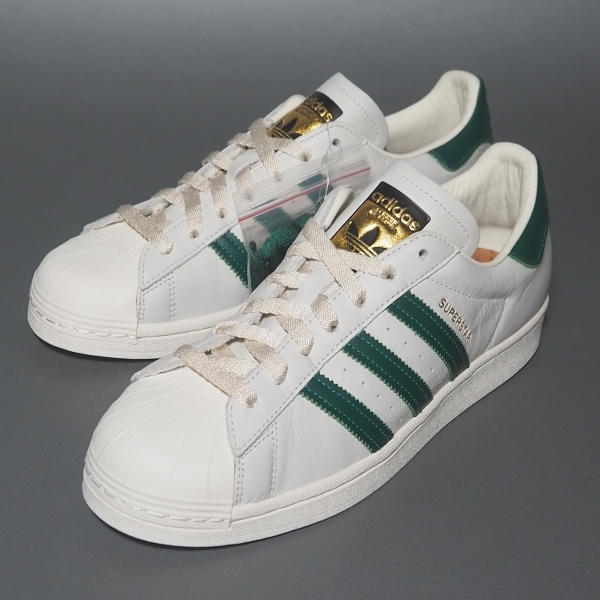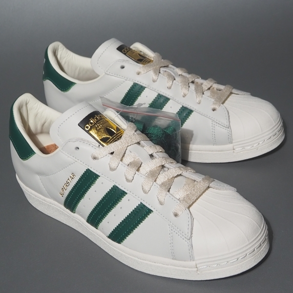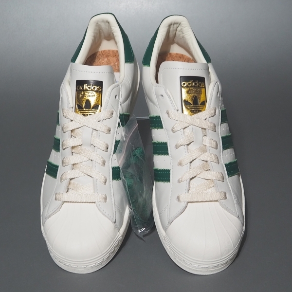 デッド!! US 8 1/2 /26.5cm 新品 2020年 adidas Originals SUPERSTAR スーパースター 白x緑 金ベロ コルクソール 天然皮革 H68186