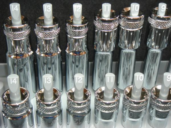 写真の通り、ソケットを入れるピン上部にサイズが書いてありますので、一目でサイズが確認できます。