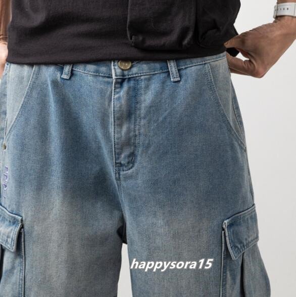 デニムショートパンツ メンズ ハーフパンツ ジーンズ Gパンツ 半ズボン 膝上 短パン ボトムス 5分丈 ブラック 2XL