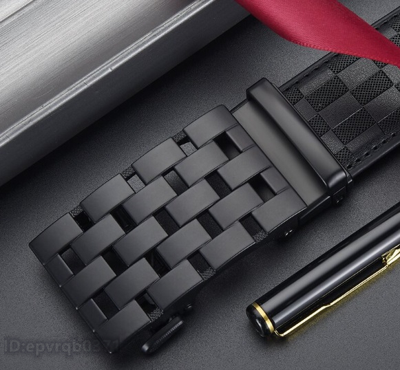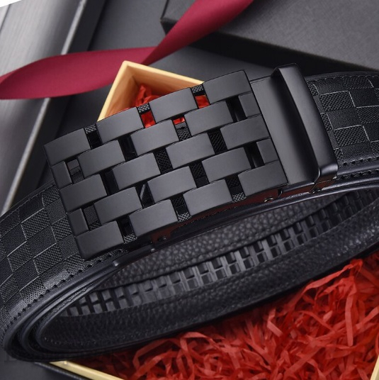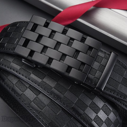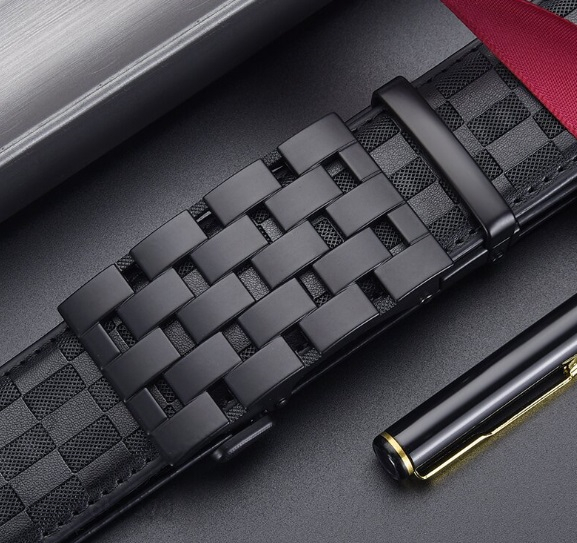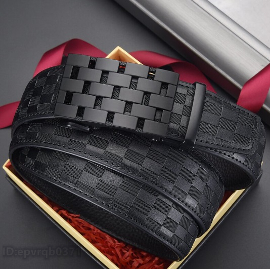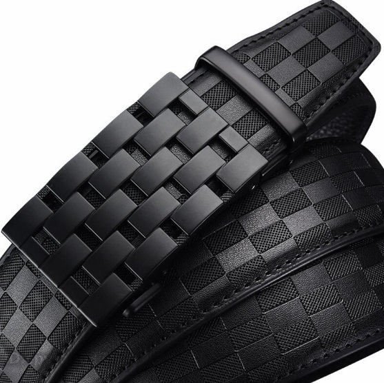 レザーベルト 新入荷 メンズベルト 本革牛革 オートロック式 金属バッ クル チェック柄 幅3.5センチ 紳士用 長さ調整可能 /黒