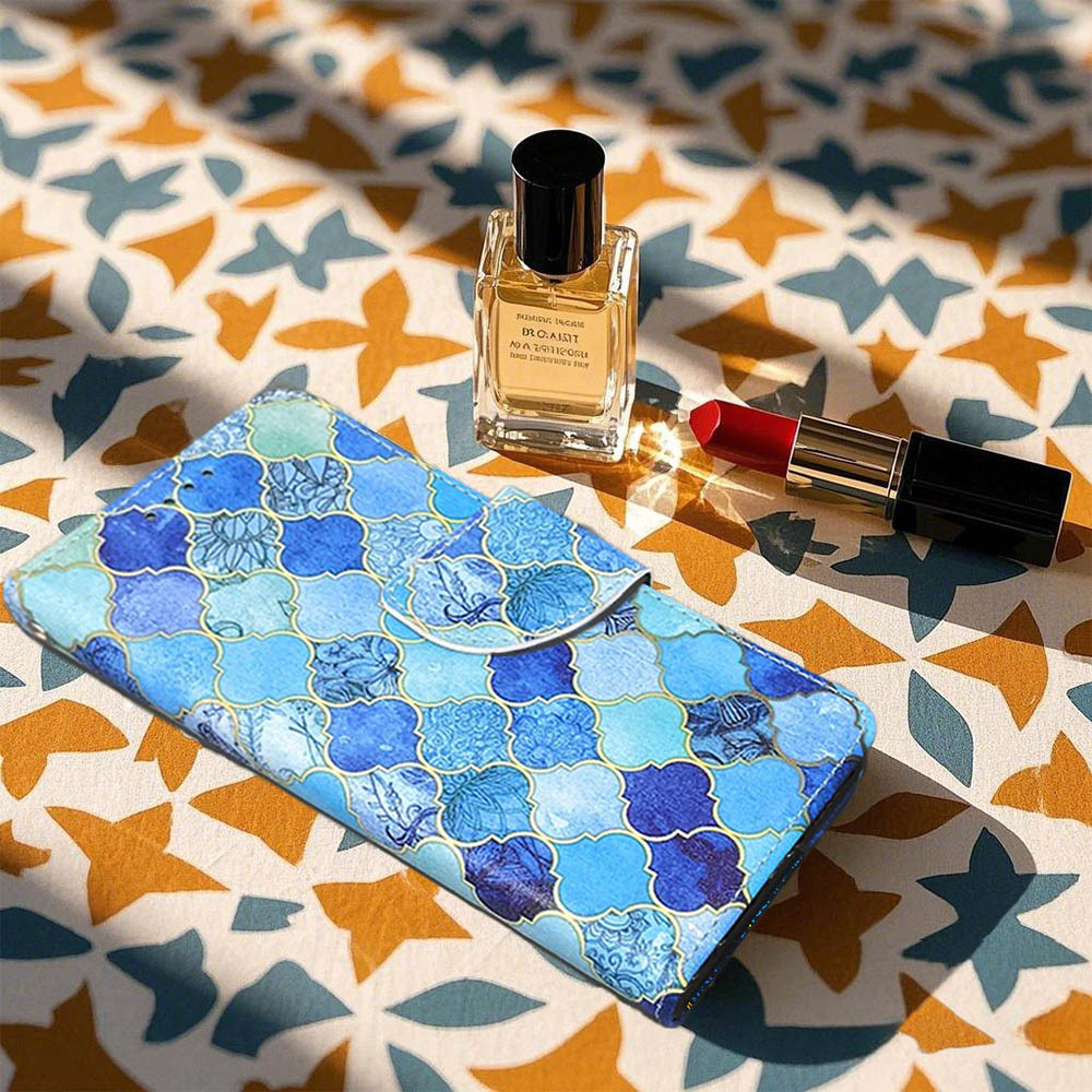 人気のモロッコタイル柄のベルト付き手帳型ケース