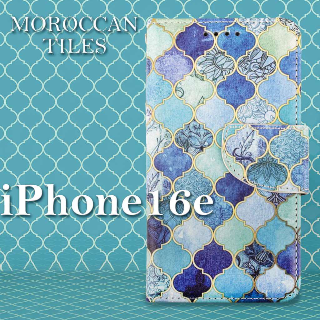 iPhone16e ケース 手帳型 モロッカン モロッコタイル iPhone 16e カバー アイフォン16e スマホケース おしゃれ グリーン ブルー 送料無料