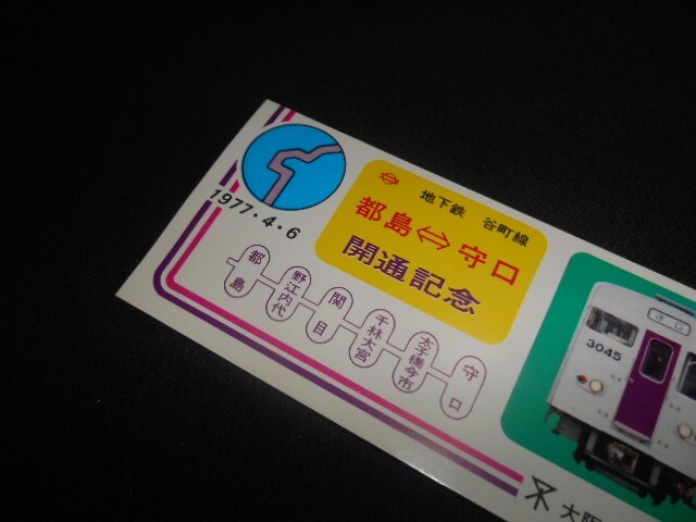 大阪市交通局 地下鉄 谷町線 都島⇔守口 開通記念 地下鉄乗車券 非売品 昭和52年 送料110円