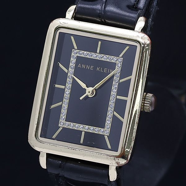 稼動 良品 箱付き アンクライン QZ 石付 スクエア 黒文字盤 レディース腕時計 2000000 NSK MTM